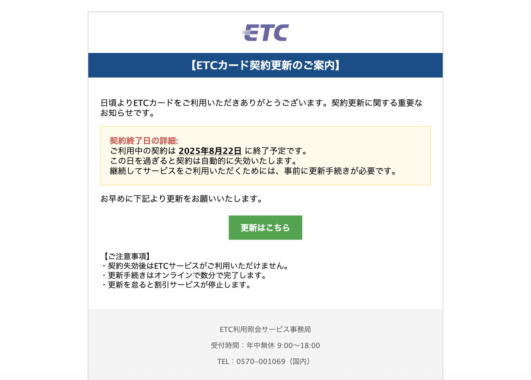 Subject: 【通知】ETCカード契約更新に関する大切なお知らせ 1755816799