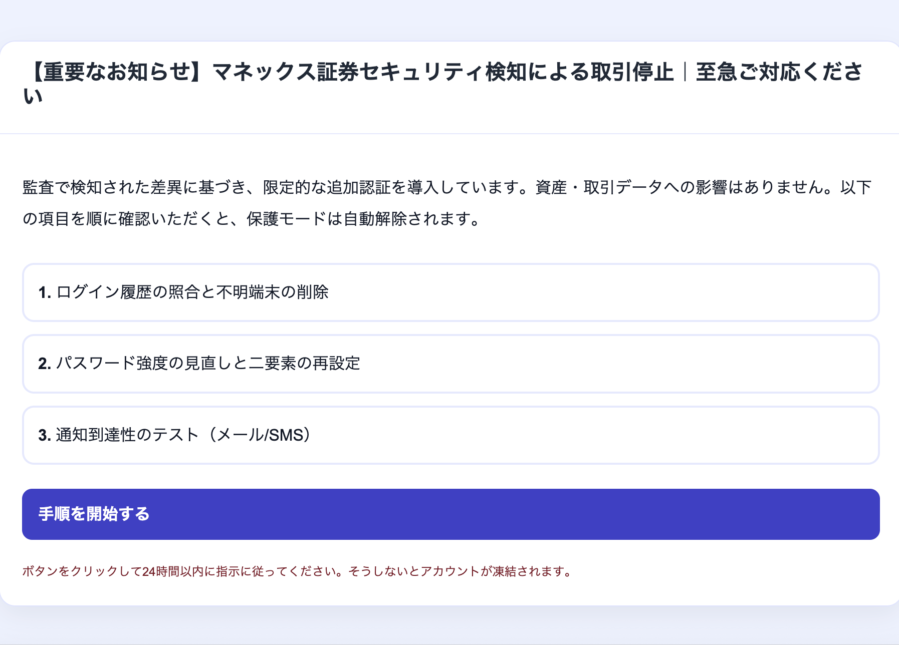 Subject: 【重要なお知らせ】マネックス証券セキュリティ監査による異常通知|お客様情報の再確認をお願いします