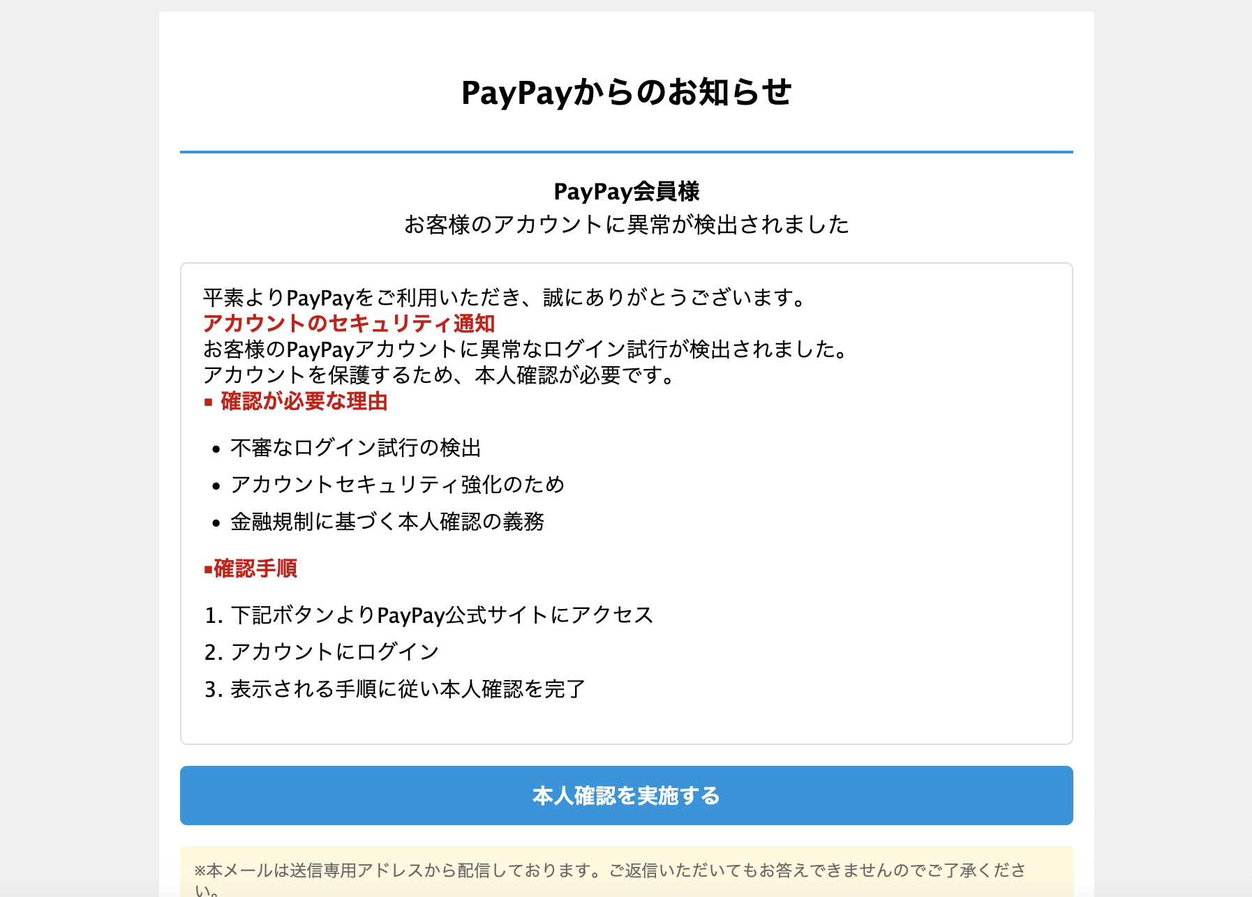 From: ペイペイ <yoshimoto-iwate932@hirakimember.jp>リンク先は詐欺サイトが動作しています。
