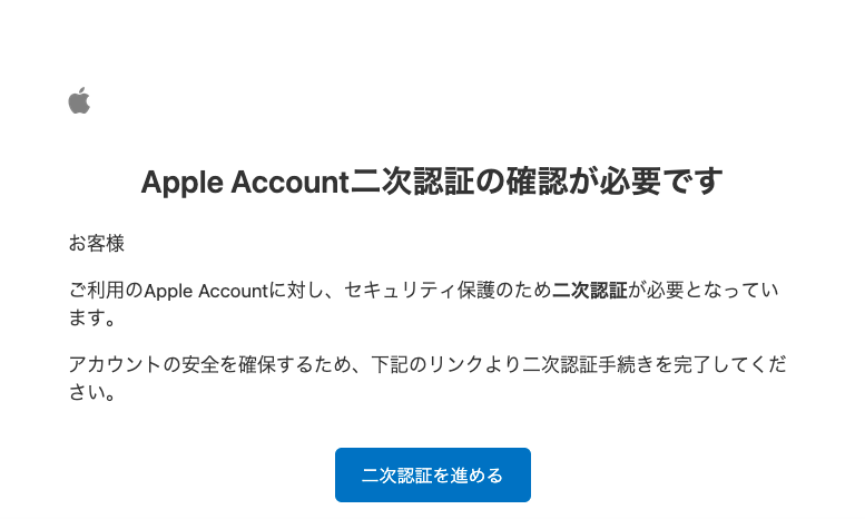 Subject: 【公式通知】Apple ID二次認証をご確認ください