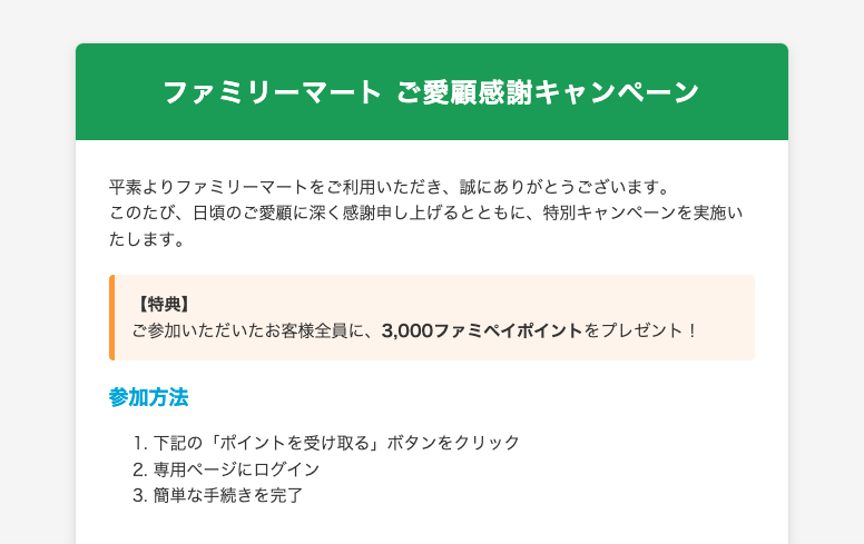 From: FamilyMart <momoseehime@jsnnd.com>リンク先は詐欺サイトが動作しています。