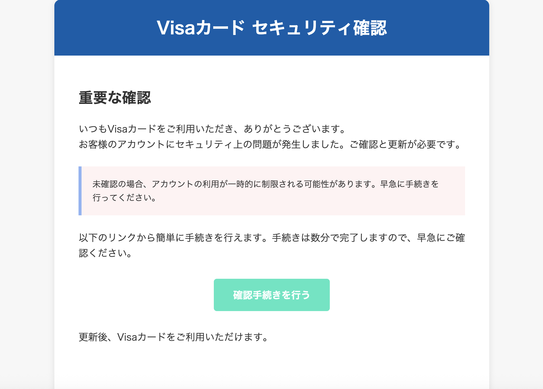 Subject: 重要:visacardの使用確認手続きを速やかにお願いします。