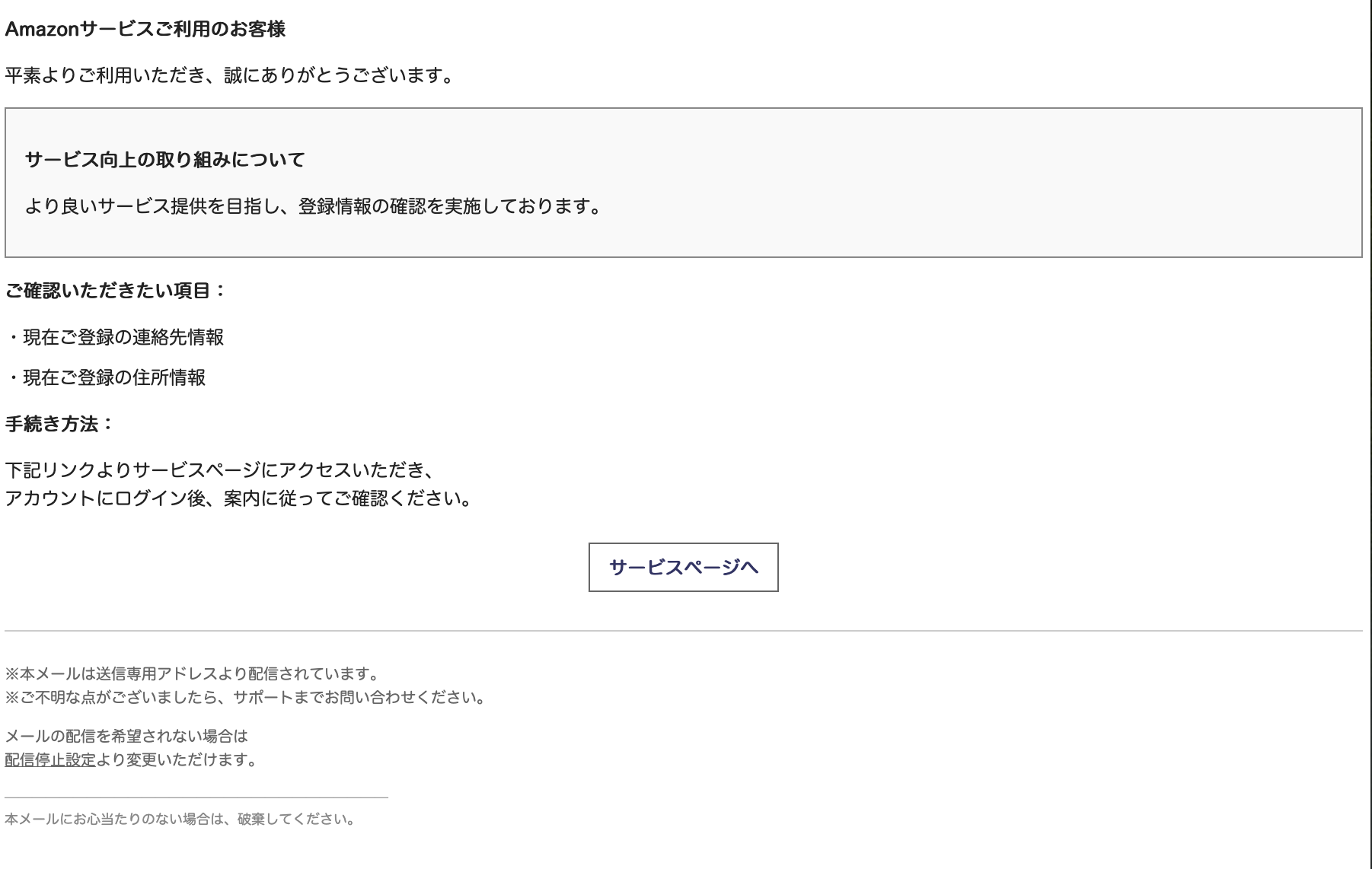2025年10月 3日にAmazonを騙る詐欺メールが学内のメールアドレスに送信されてきていることを確認しました。サンプルとして一部を示します。