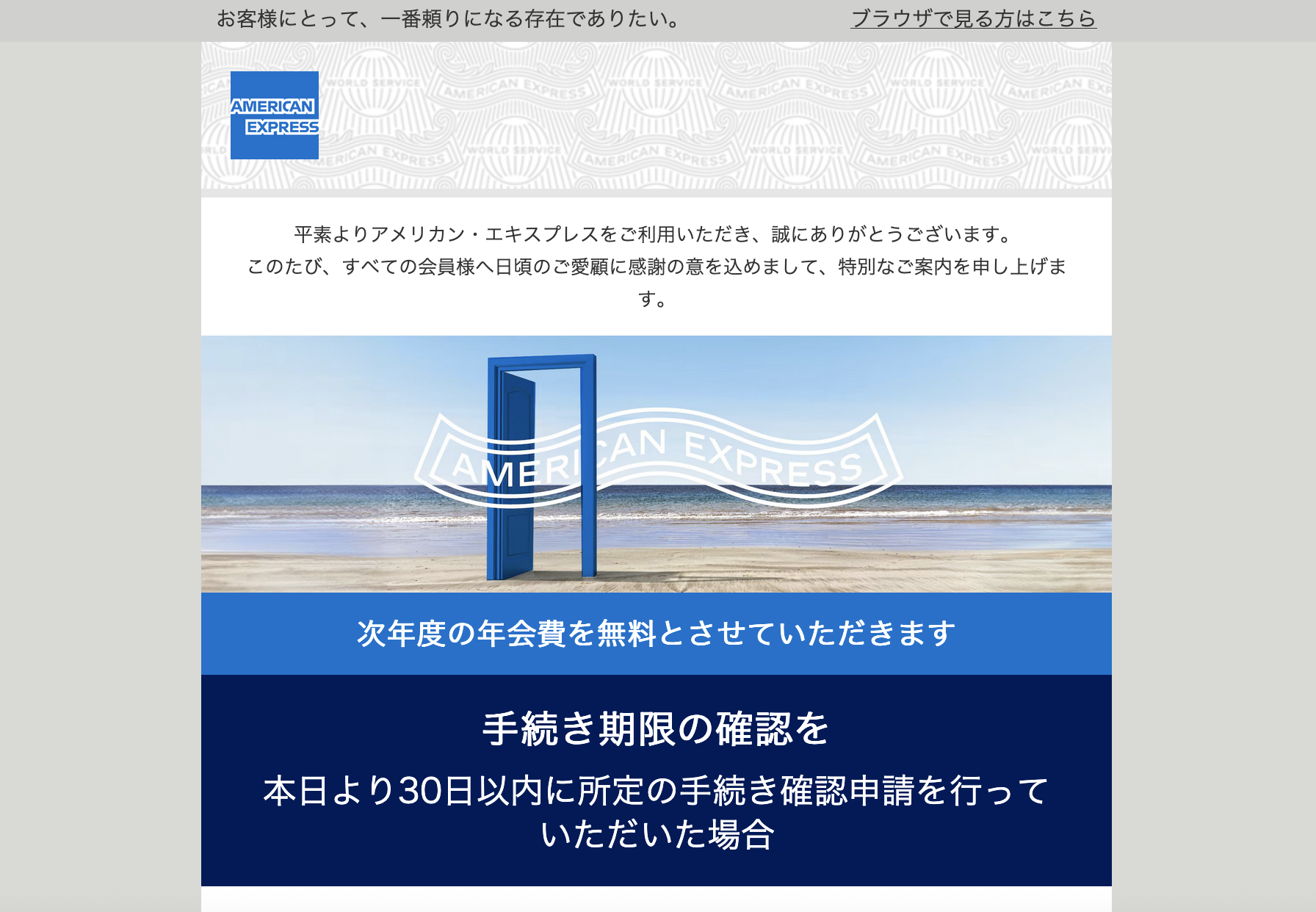 Subject: 【American Express】会員様だけの特別優待:次年度年会費無料