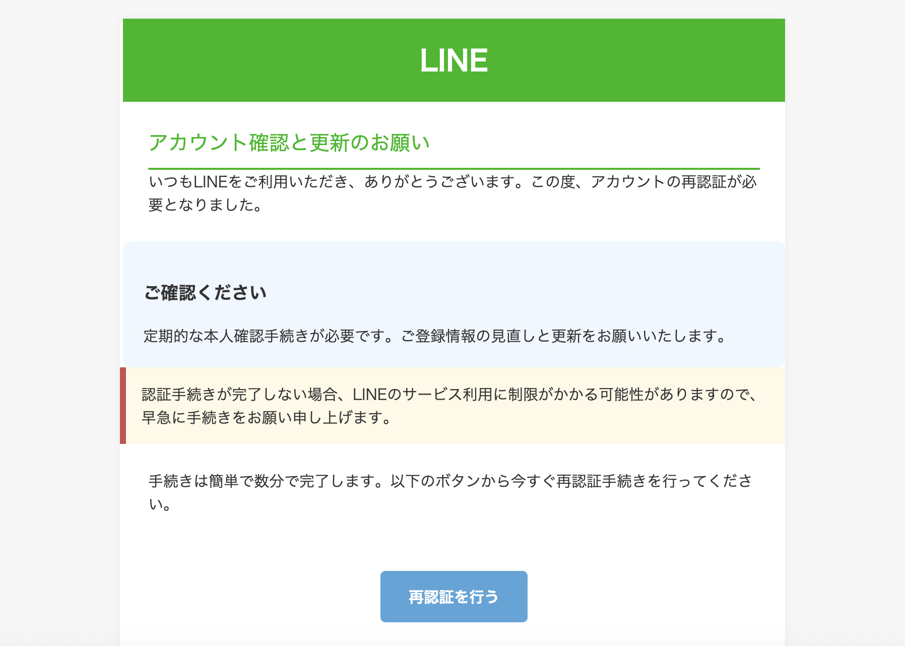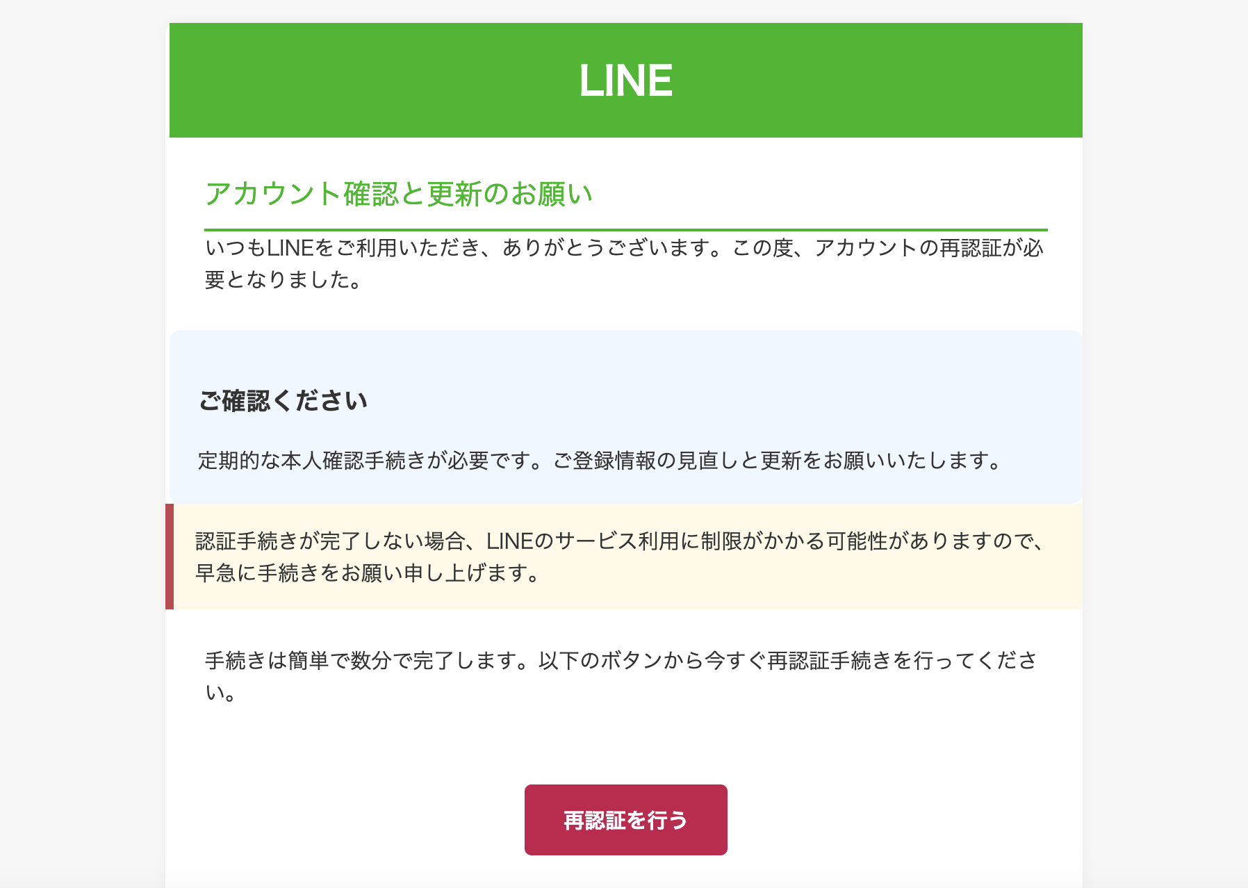 Subject: お急ぎください:LINEアカウント再認証の必要性について