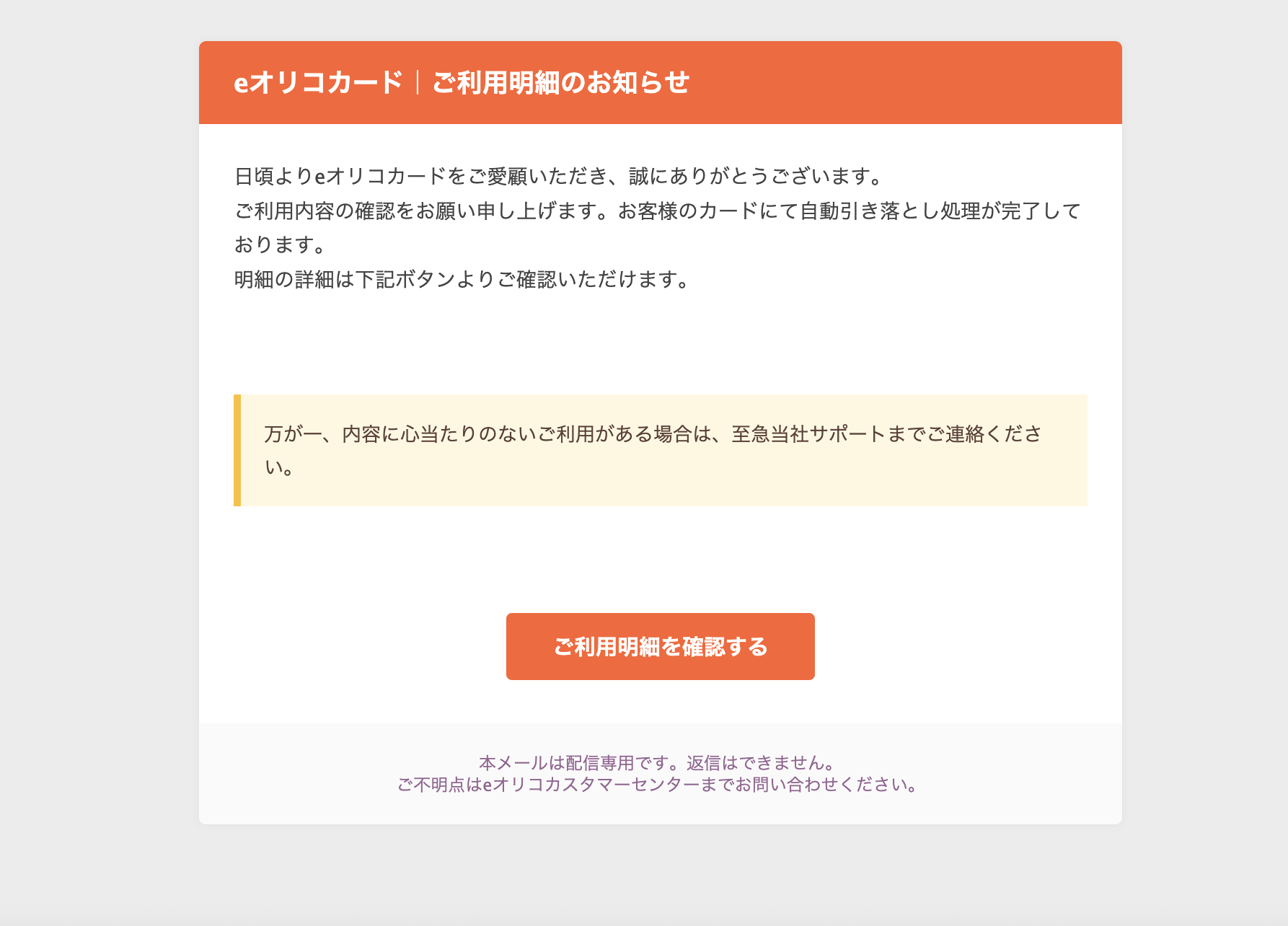 Subject: eオリコカードご利用の確認とご注意