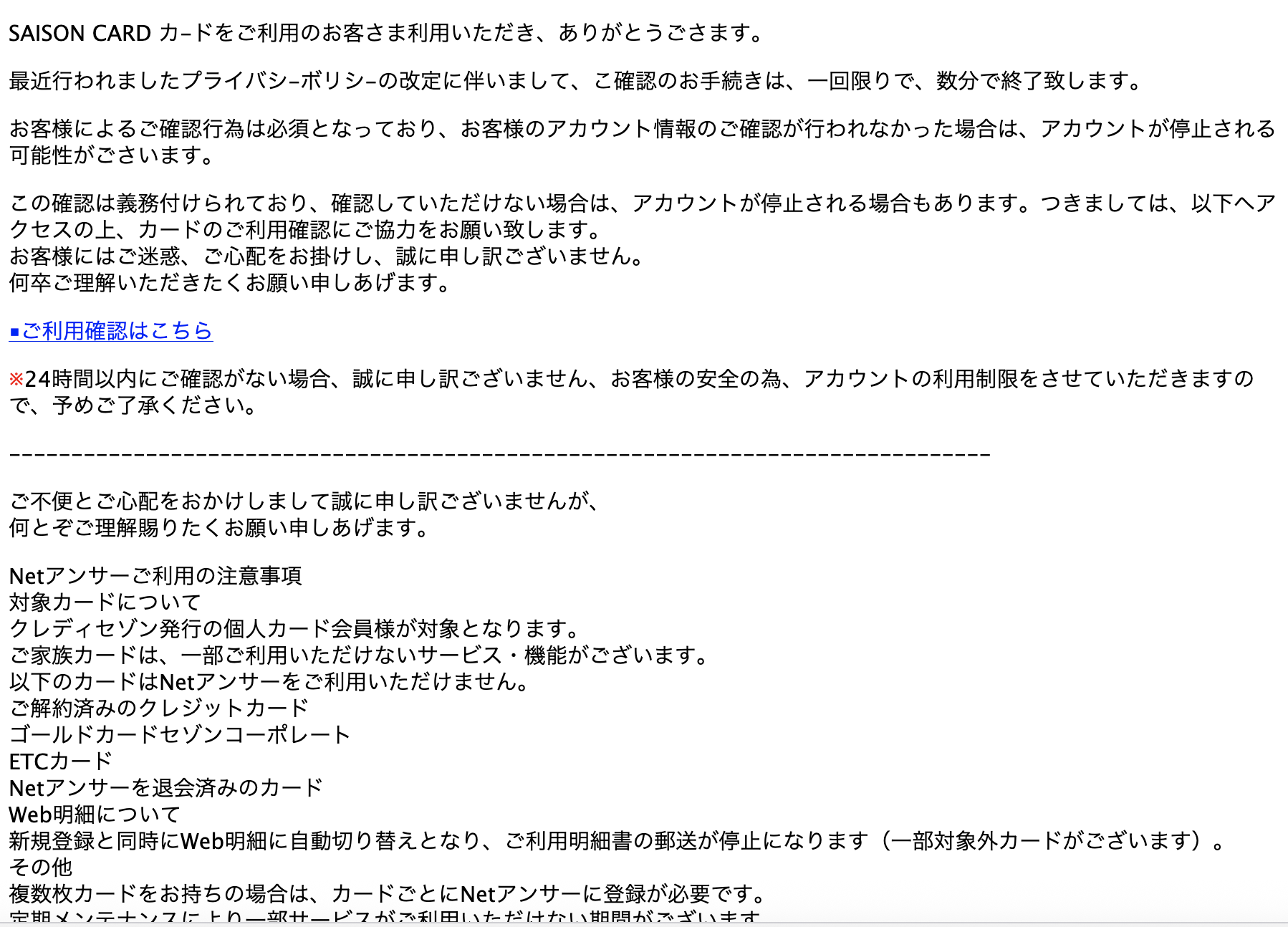 From: セゾンカード <order-update@saisoncard.co.jp>リンク先は接続できません。
