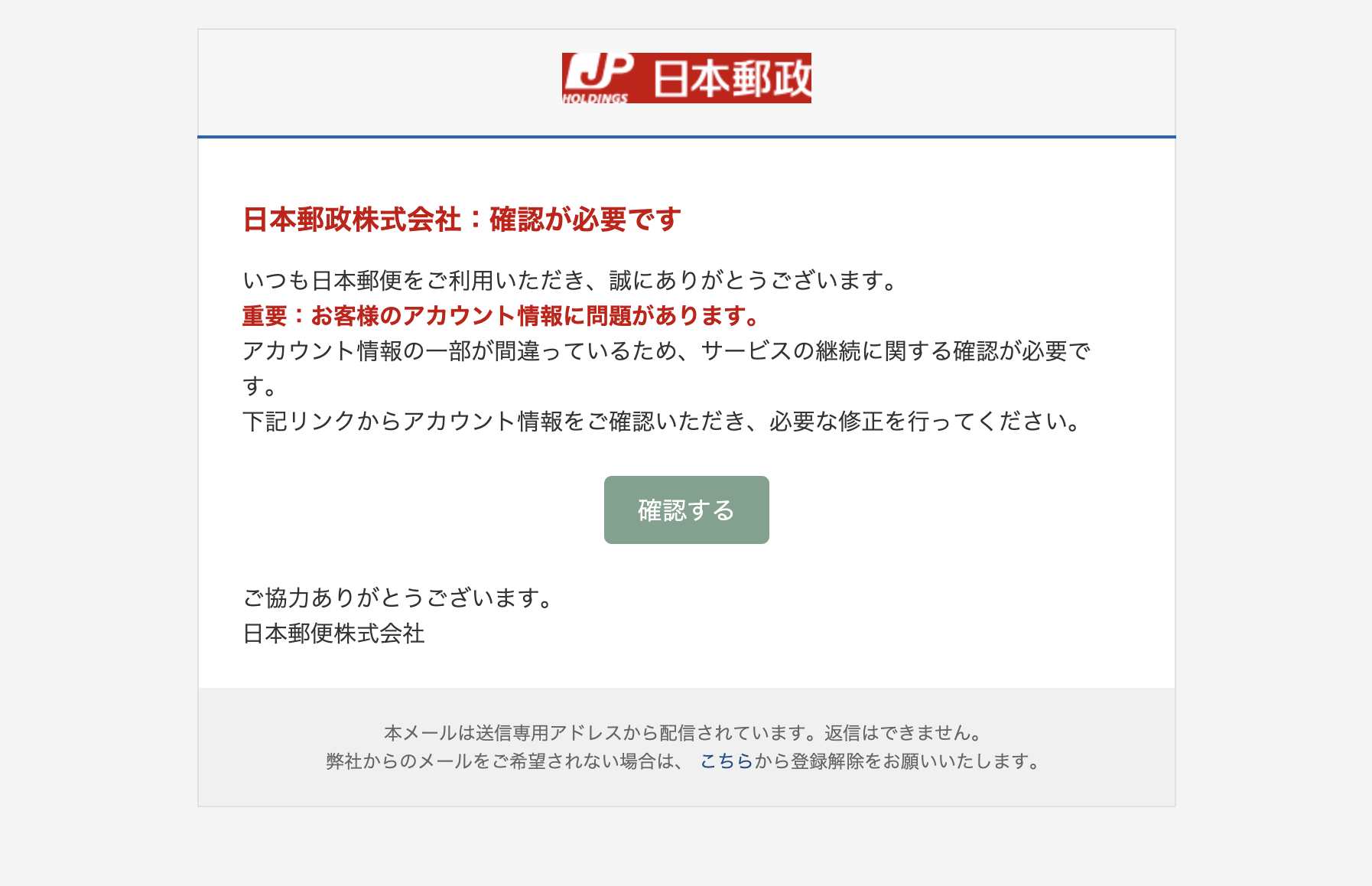 Subject: 【重要】日本郵政株式会社より確認のお願い