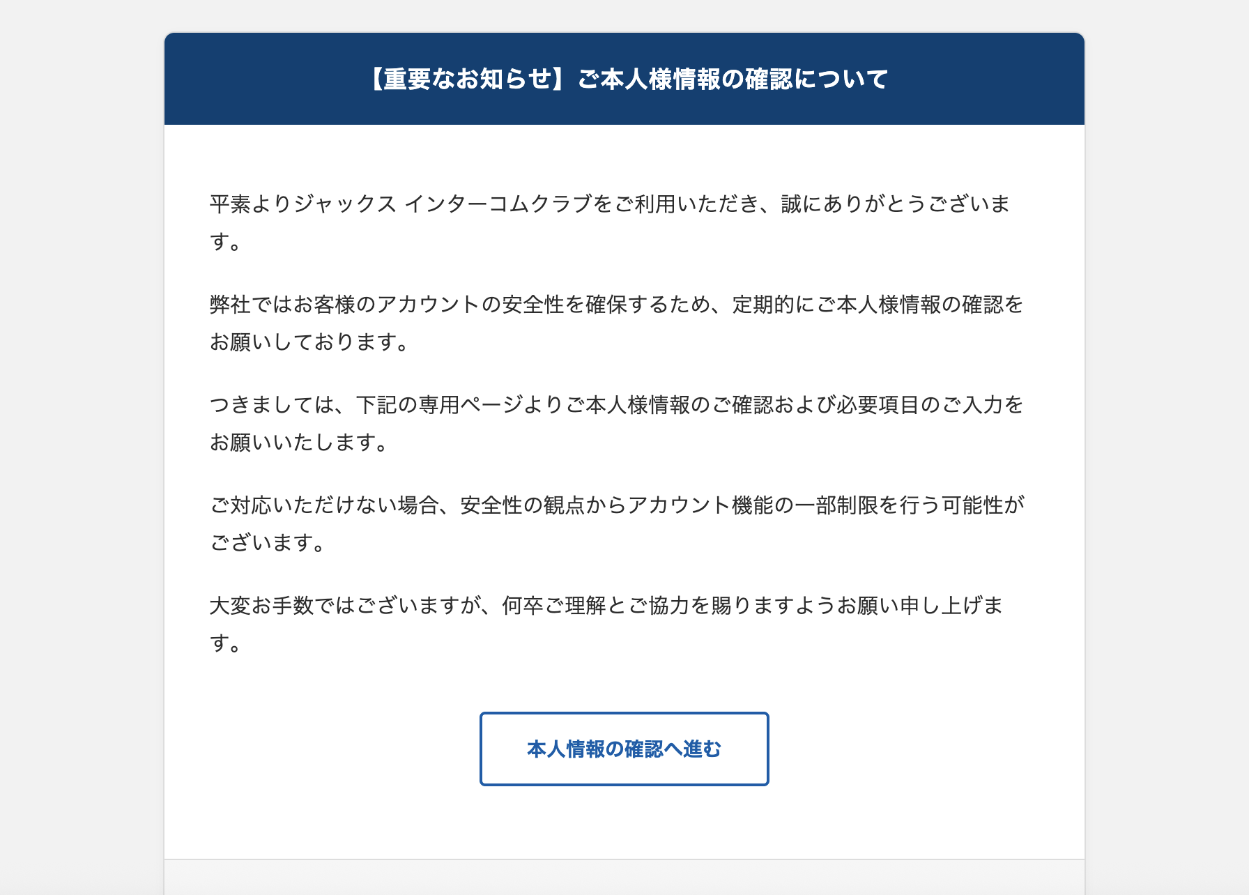 Subject: 【ご確認ください】JACCS 本人確認手続き確認のお願い