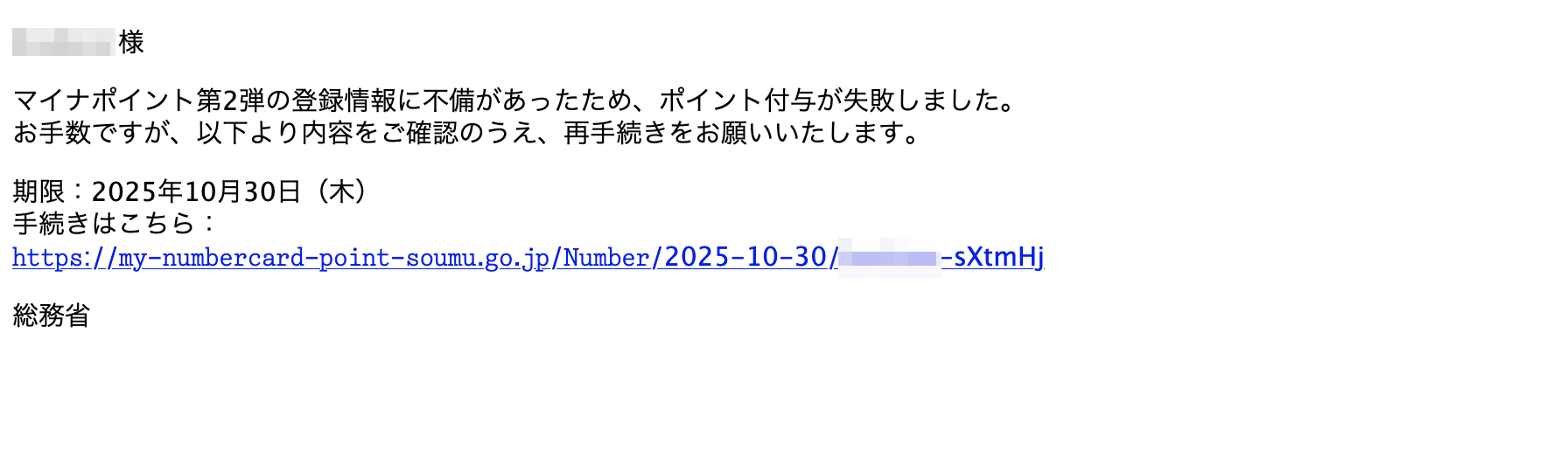 From: 総 務省 <MynumbercardPointSoumuE5MEeMail@n.vodafone.ne.jp>リンク先は詐欺サイトが動作しています。