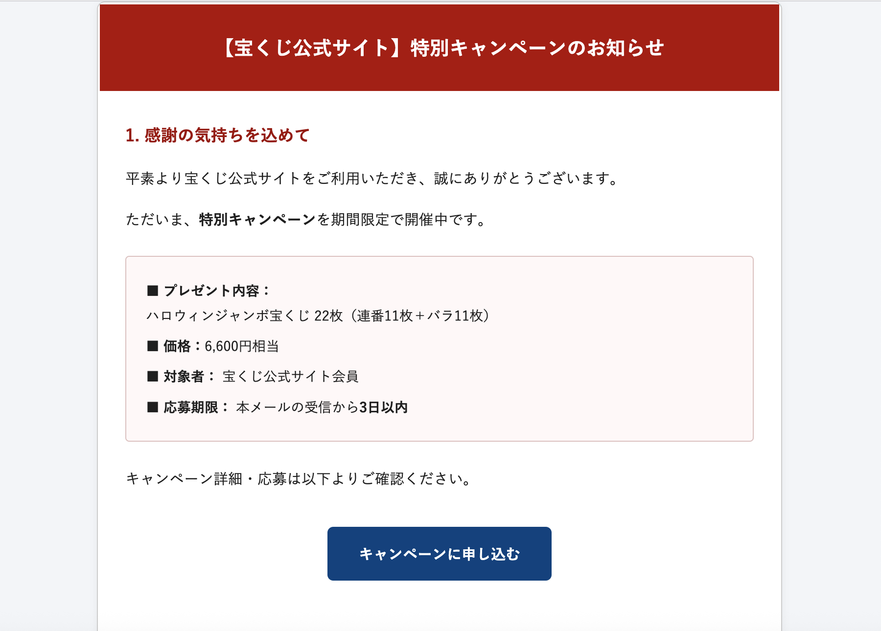 Subject: 公式特別優待:ジャンボ22枚を無料進呈させていただきます