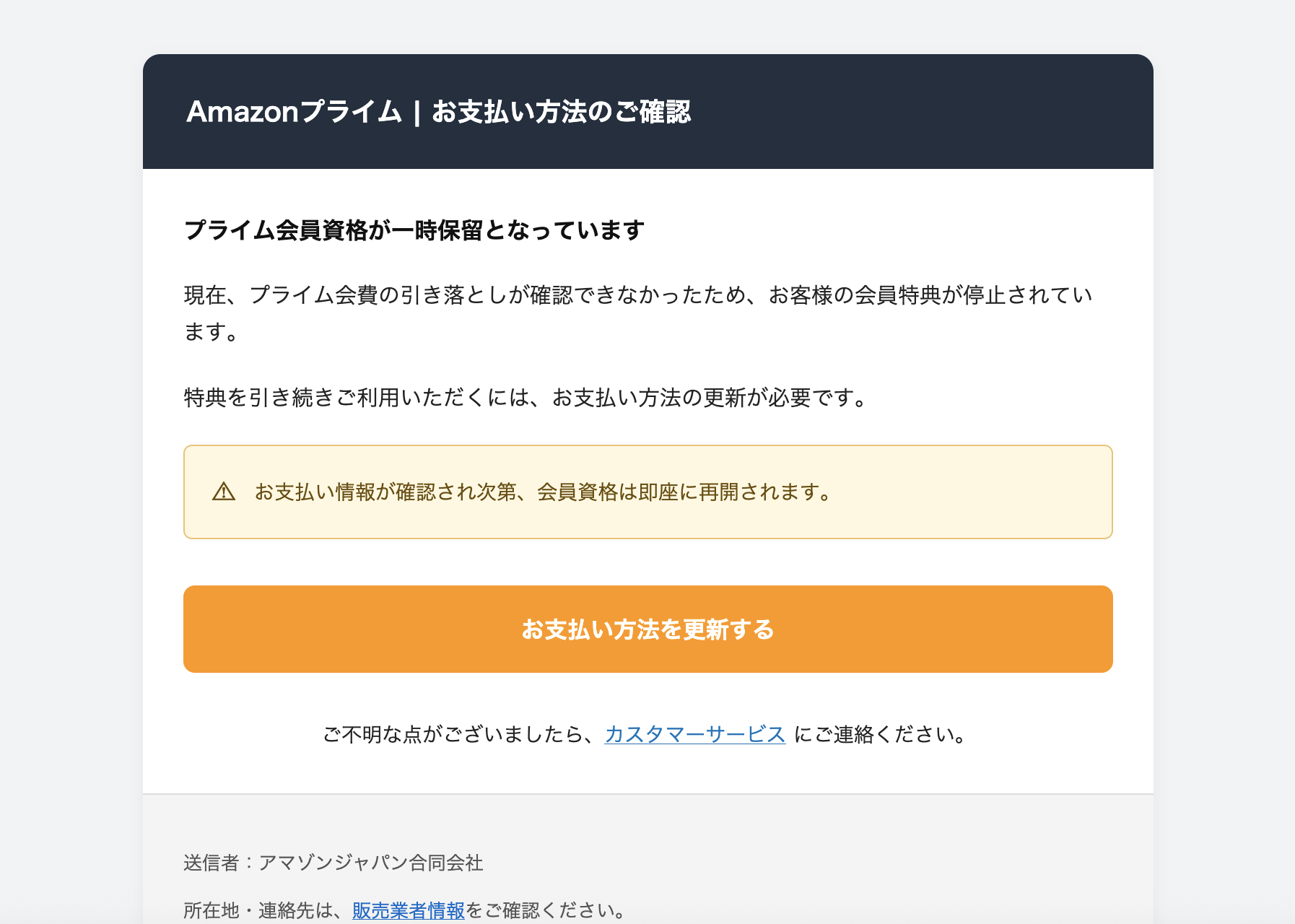 Subject: 【Amazon】プライムの利用資格が一時中断されました