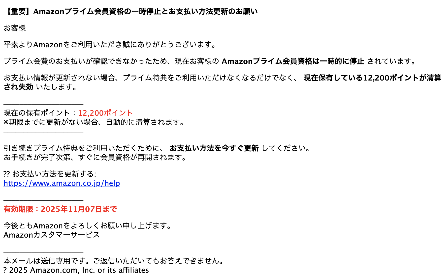 Subject: 【重要】A m a z o nプライム会員資格の一時停止とお支払い方法更新のお願い