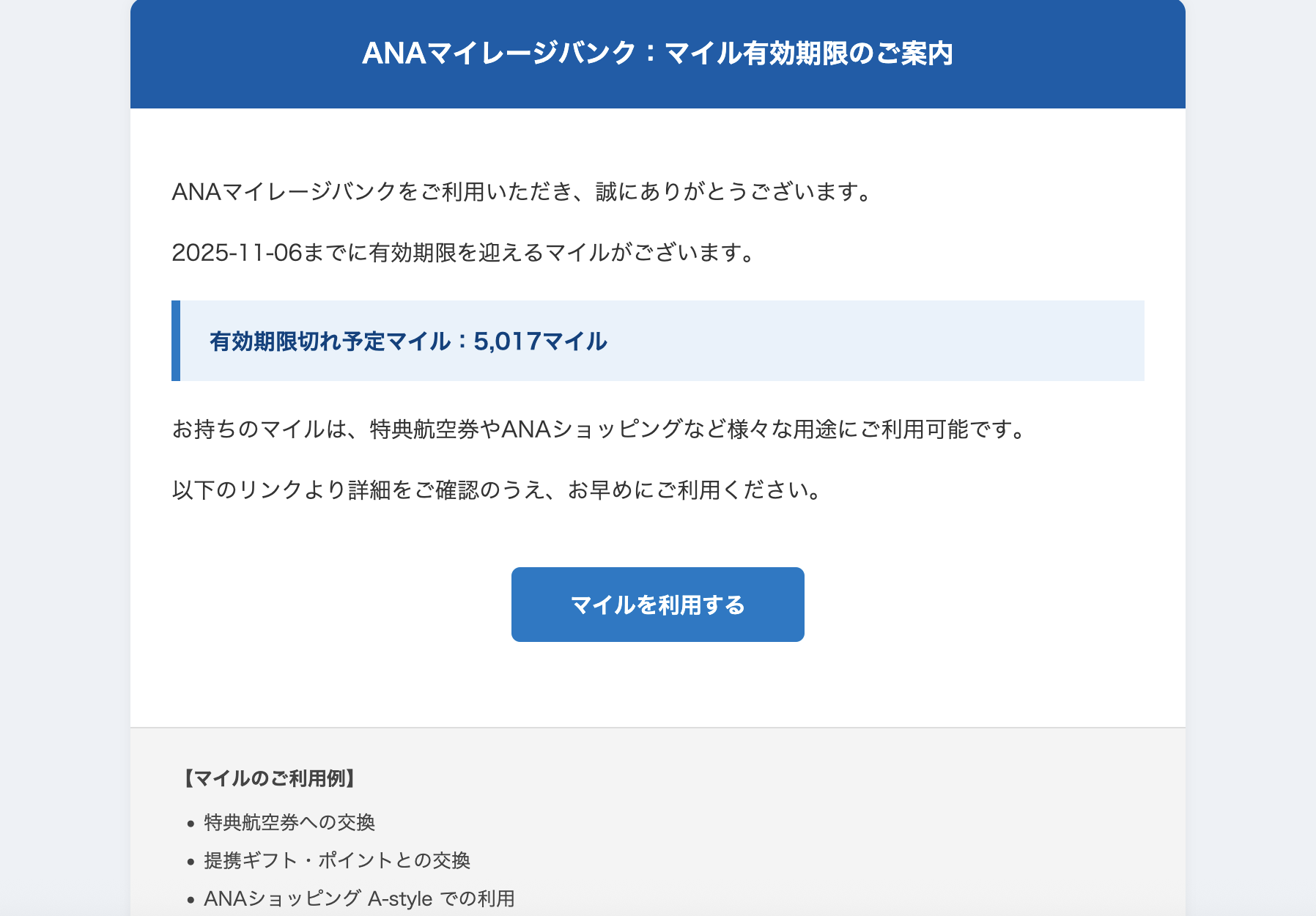 Subject: マイル加算手続きについて、ANAマイレージクラブからのお知らせ。