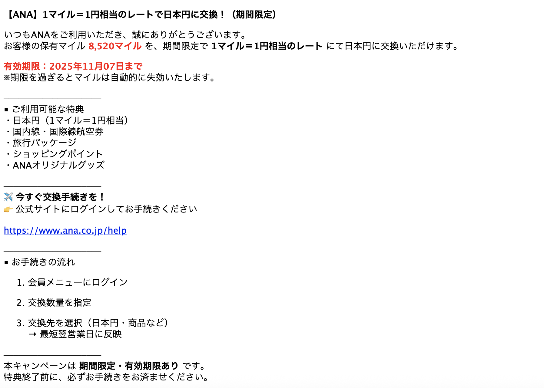 Subject: 【ANA】1マイル=1円相当のレートで日本円に交換!(期間限定)No.9396585