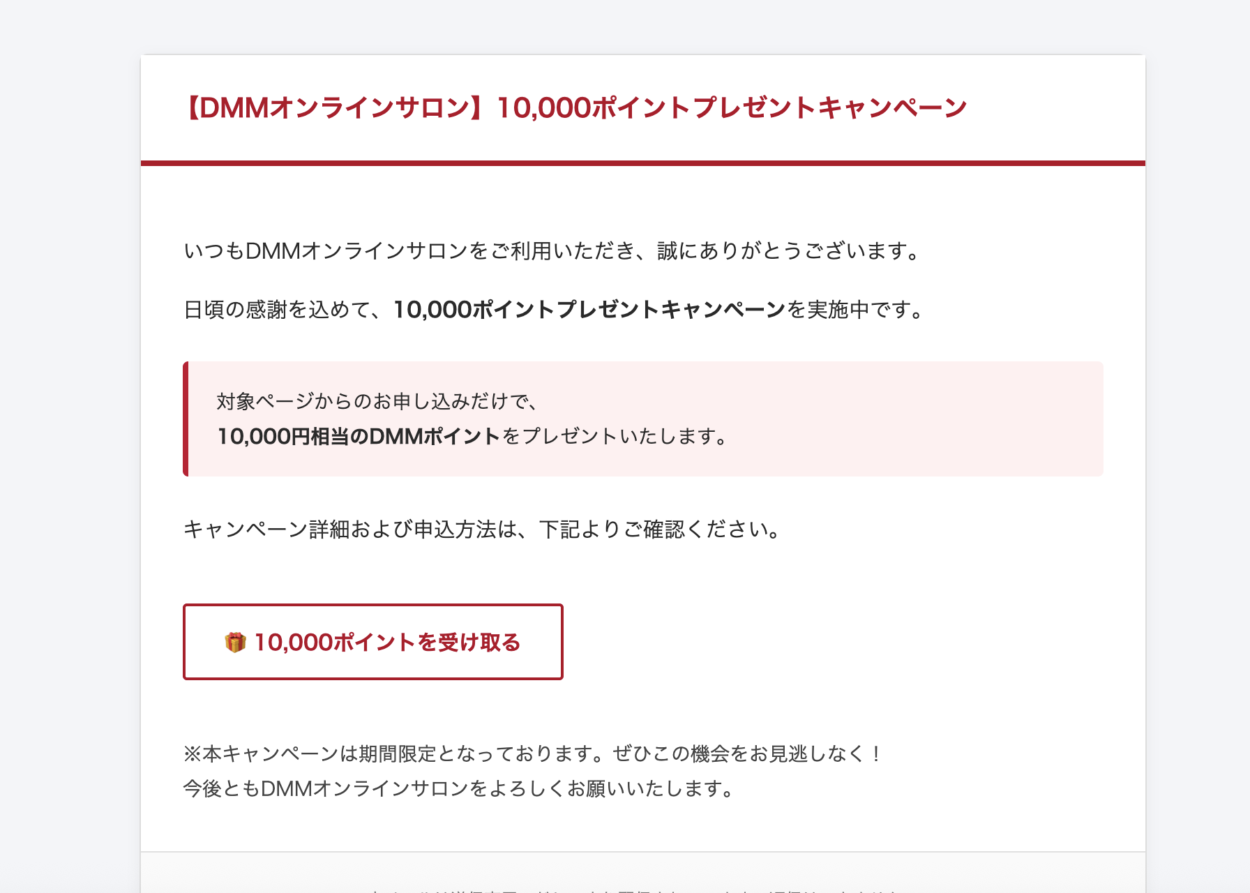 Subject: 【新しい特典】DMMオンラインサロン登録者に10,000ポイント!