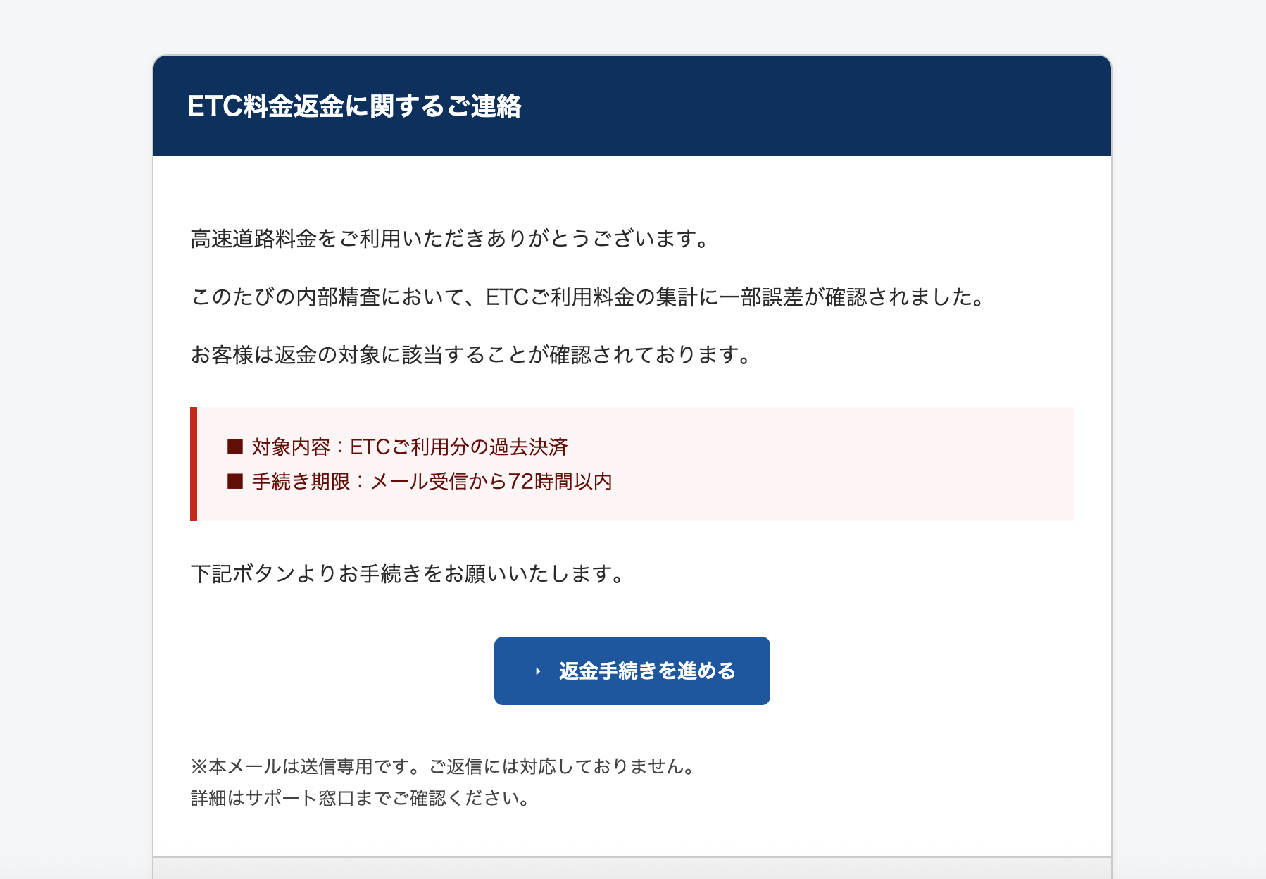 Subject: 【大切なお知らせ】ETC料金の払い戻しに関して