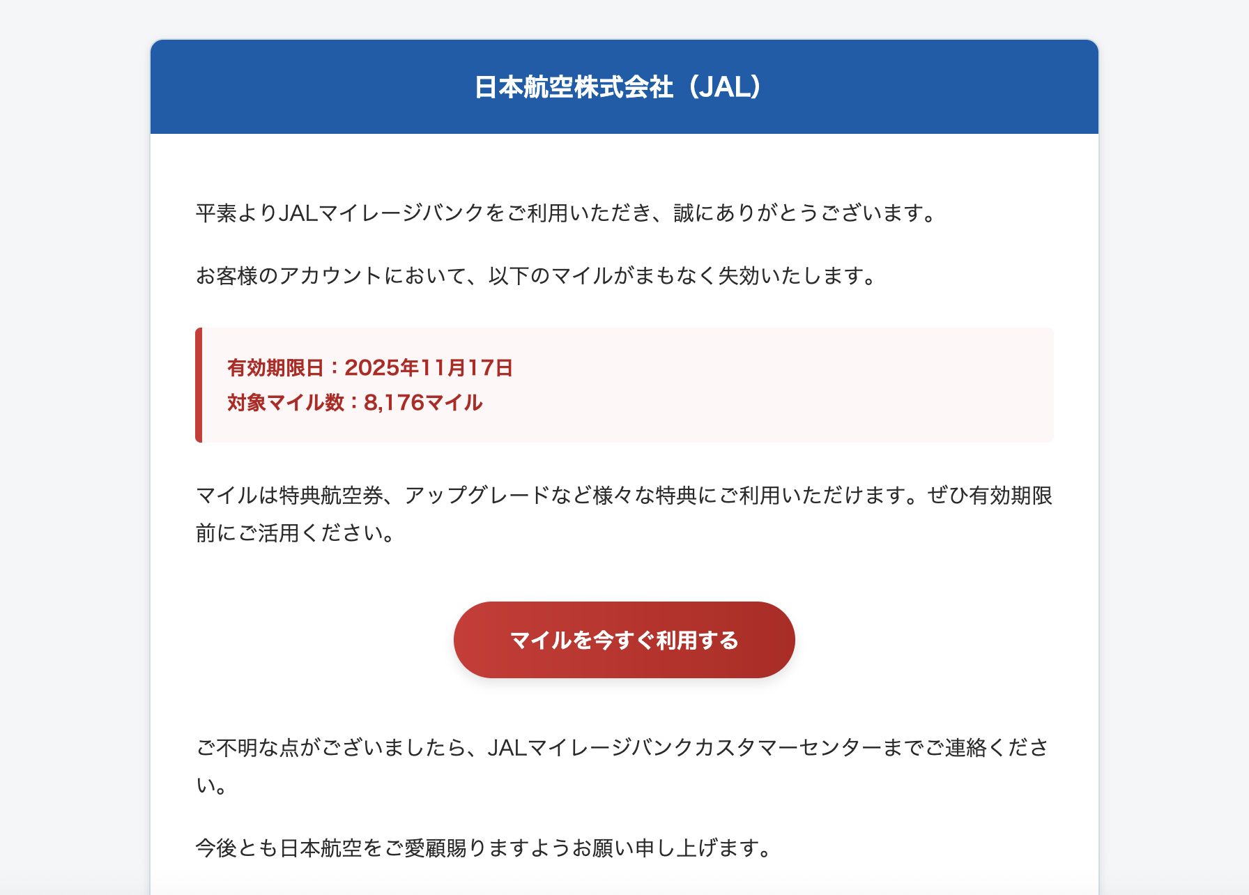 Subject: ご確認ください:JALマイル有効期限のお知らせ