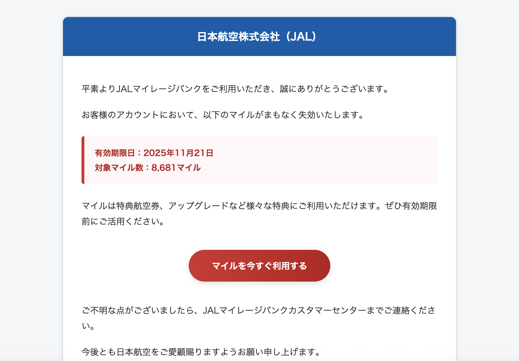 From: JALマイレージバンク <otsukaryotachofu304@lpnyc.com>リンク先は詐欺サイトが動作しています。