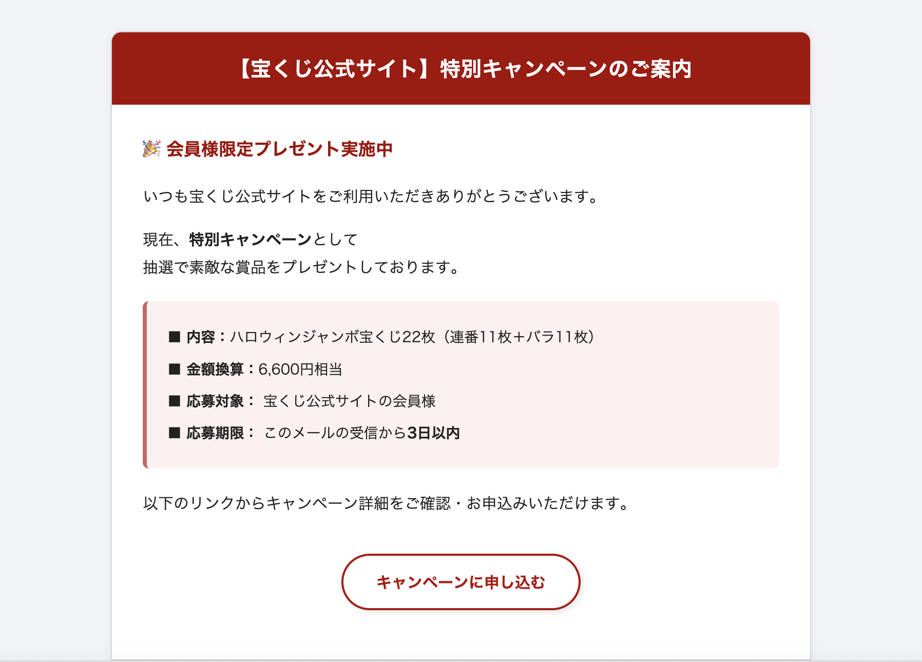 Subject: 今だけ無料!ジャンボ宝くじ22枚進呈キャンペーン