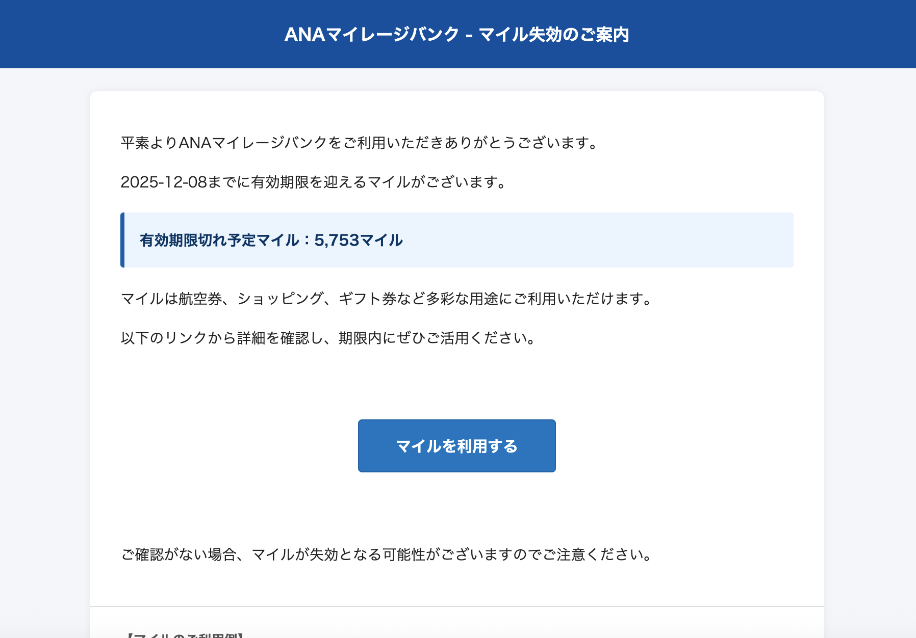 Subject: マイル加算手続きについて、ANAマイレージクラブからのお知らせ。