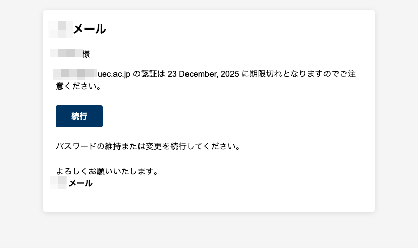 Subject: メール認証を更新してください xxxx@xx.uec.ac.jp .