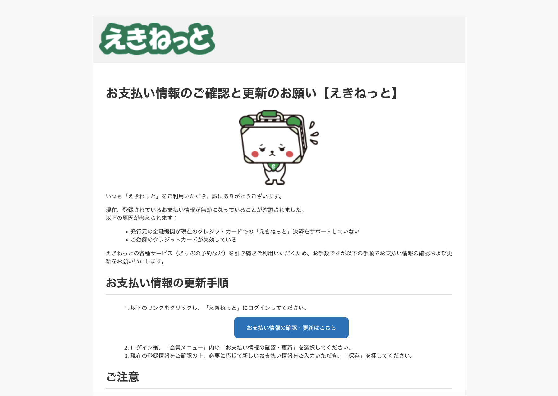 Subject: *【えきねっと】*お支払い情報のご確認と更新のお願い(メール番号:GP-49461300308)*