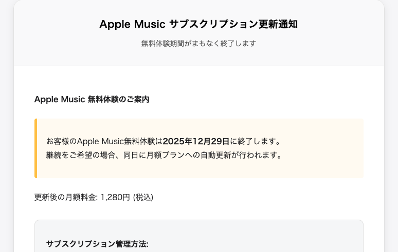 Subject: 【重要】Apple Music サブスクリプション更新通知