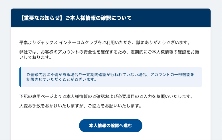Subject: 【ご連絡】JACCS 登録情報の確認更新のご確認