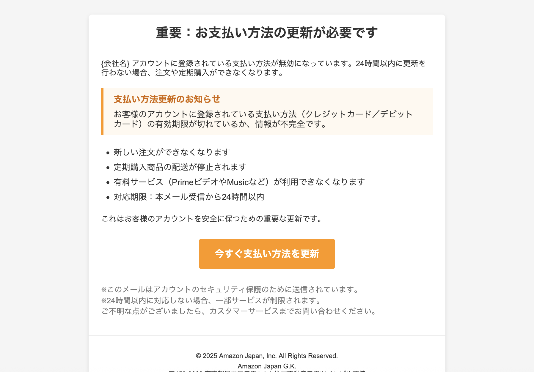 2026年 3月 9日にAmazonを騙る詐欺メールが学内のメールアドレスに送信されてきていることを確認しました。サンプルとして一部を示します。