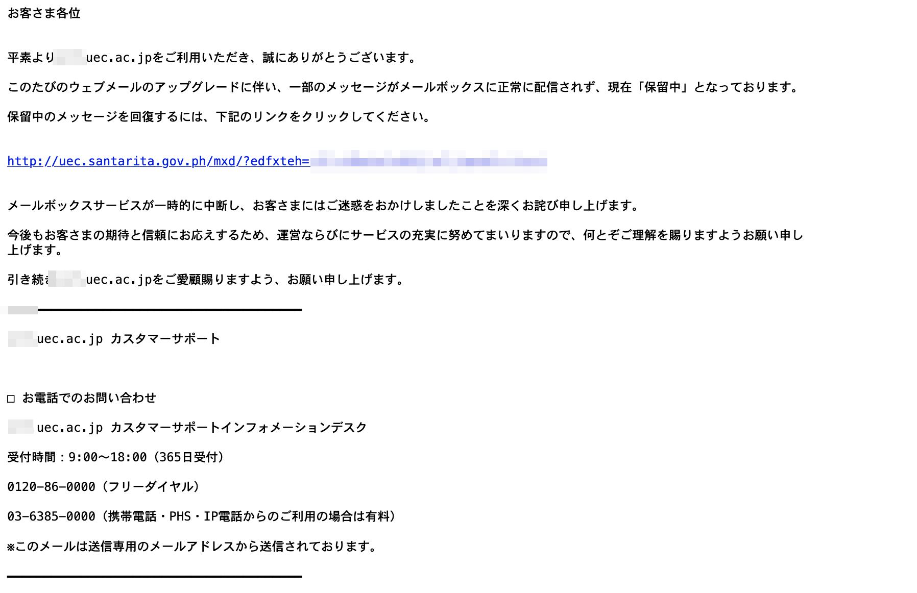 From: Uecサポートセンター<xxxx@xx.uec.ac.jp>リンク先は接続できますがエラーとなります。