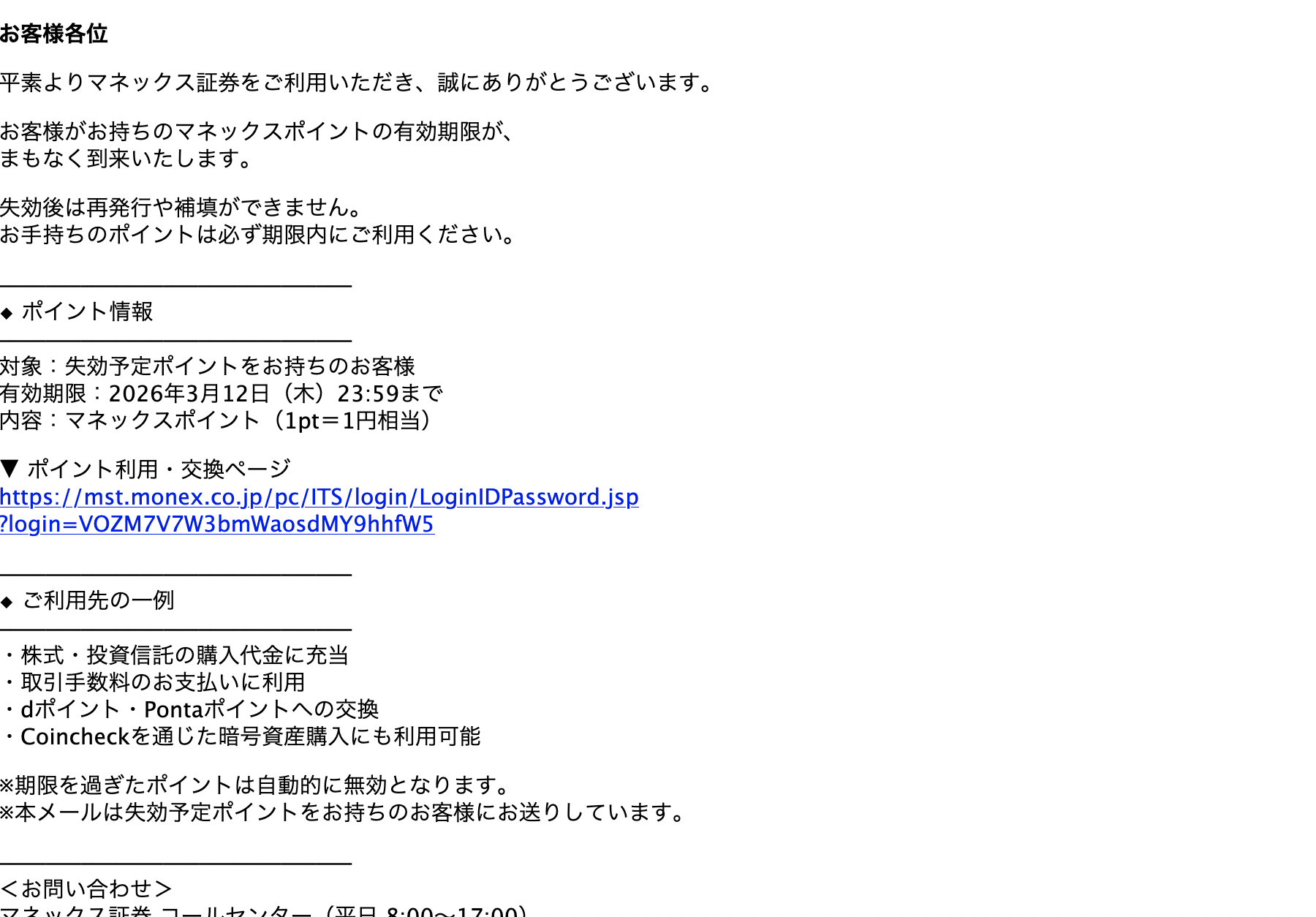 Subject: 【重要】マネックスポイント失効まであとわずか|マネックス証券 No36192