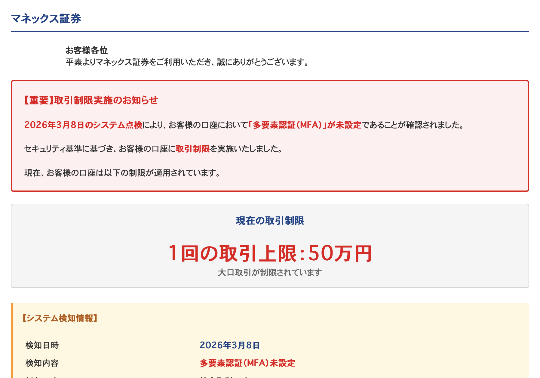 Subject: 【重要】マネックス証券|取引制限実擦里里蕕察容ぢ未定)No.0553698430