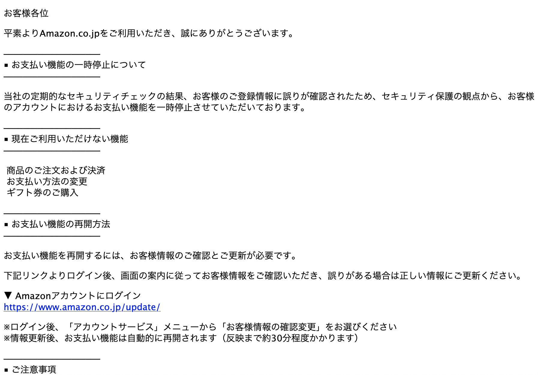2026年 4月 2日にAmazonを騙る詐欺メールが学内のメールアドレスに送信されてきていることを確認しました。サンプルとして一部を示します。
