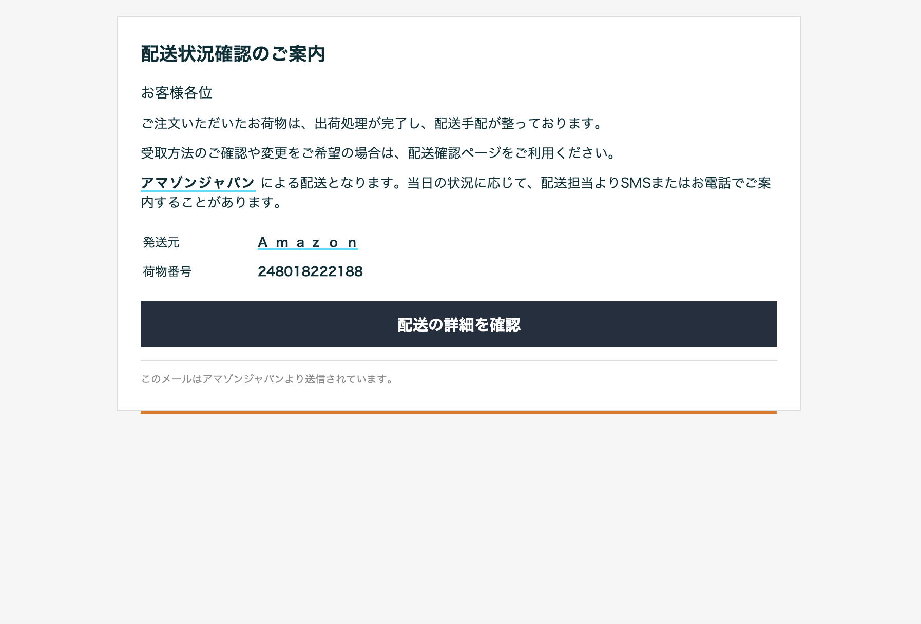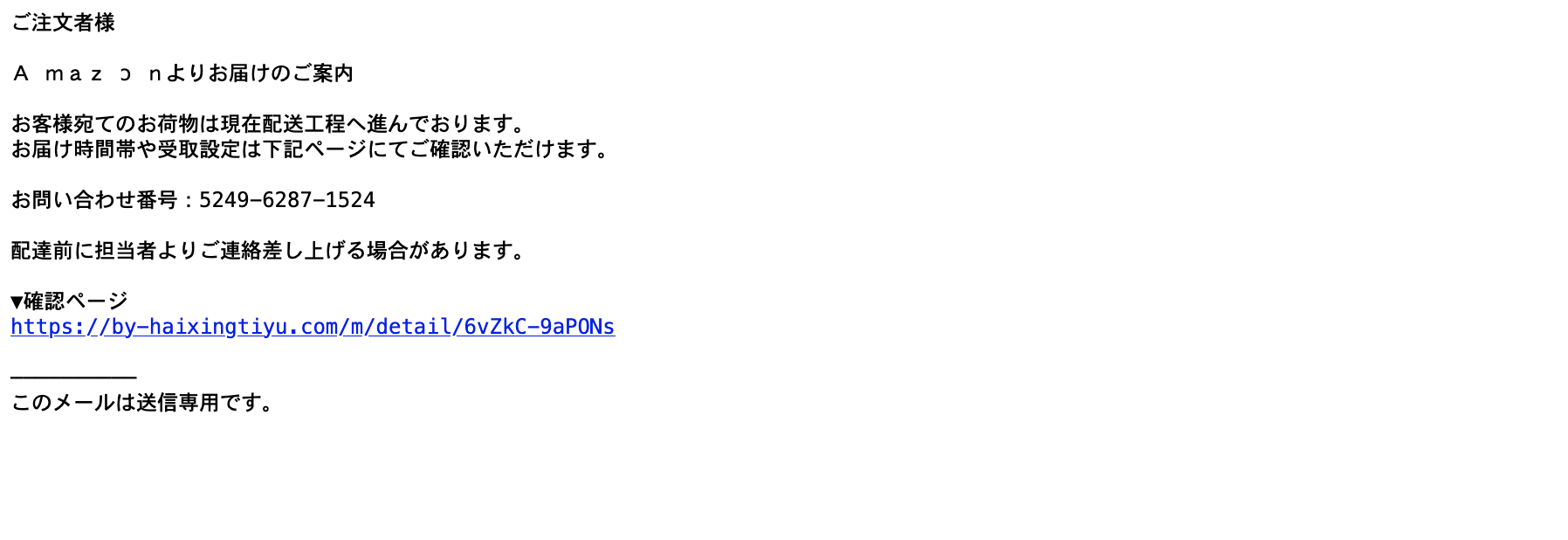 From: "amazon.co.jp" <noreply@mail10.hzdlvcloud.com>リンク先は詐欺サイトが動作しています。