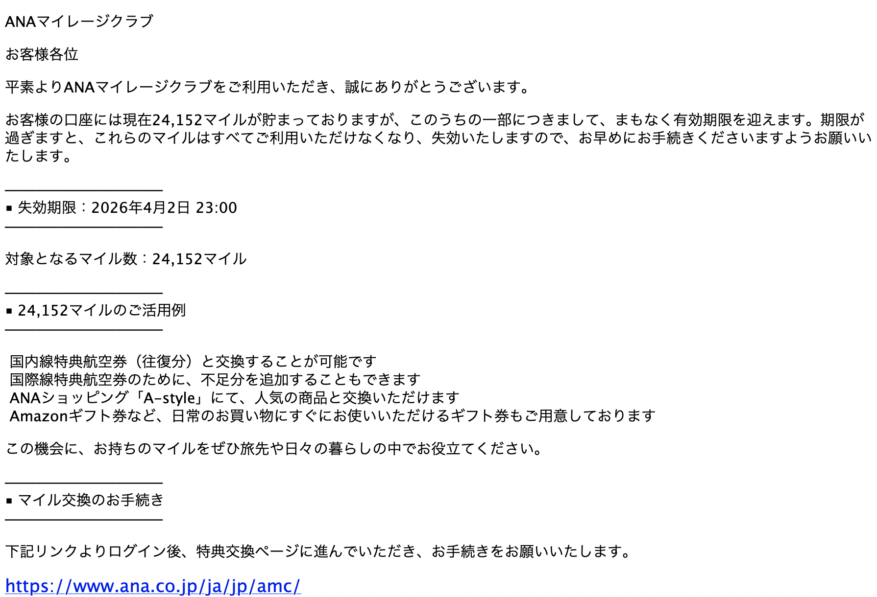 Subject: 【最終通知】ANAマイル失効まで残りわずか|4月2日までにお手続きを