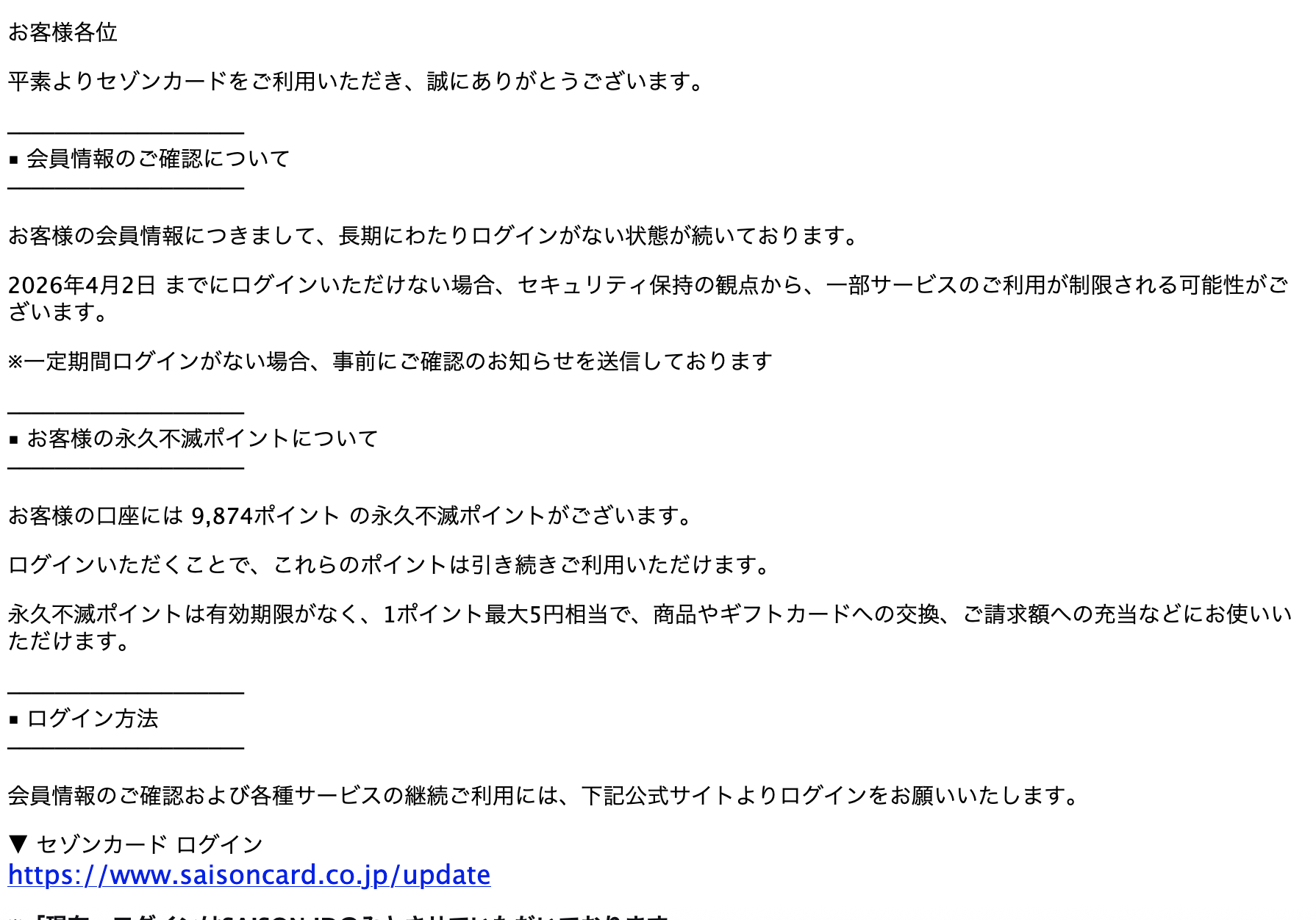 Subject: 【要ログイン】セゾンカード 会員情報のご確認のお願い(4月2日まで)