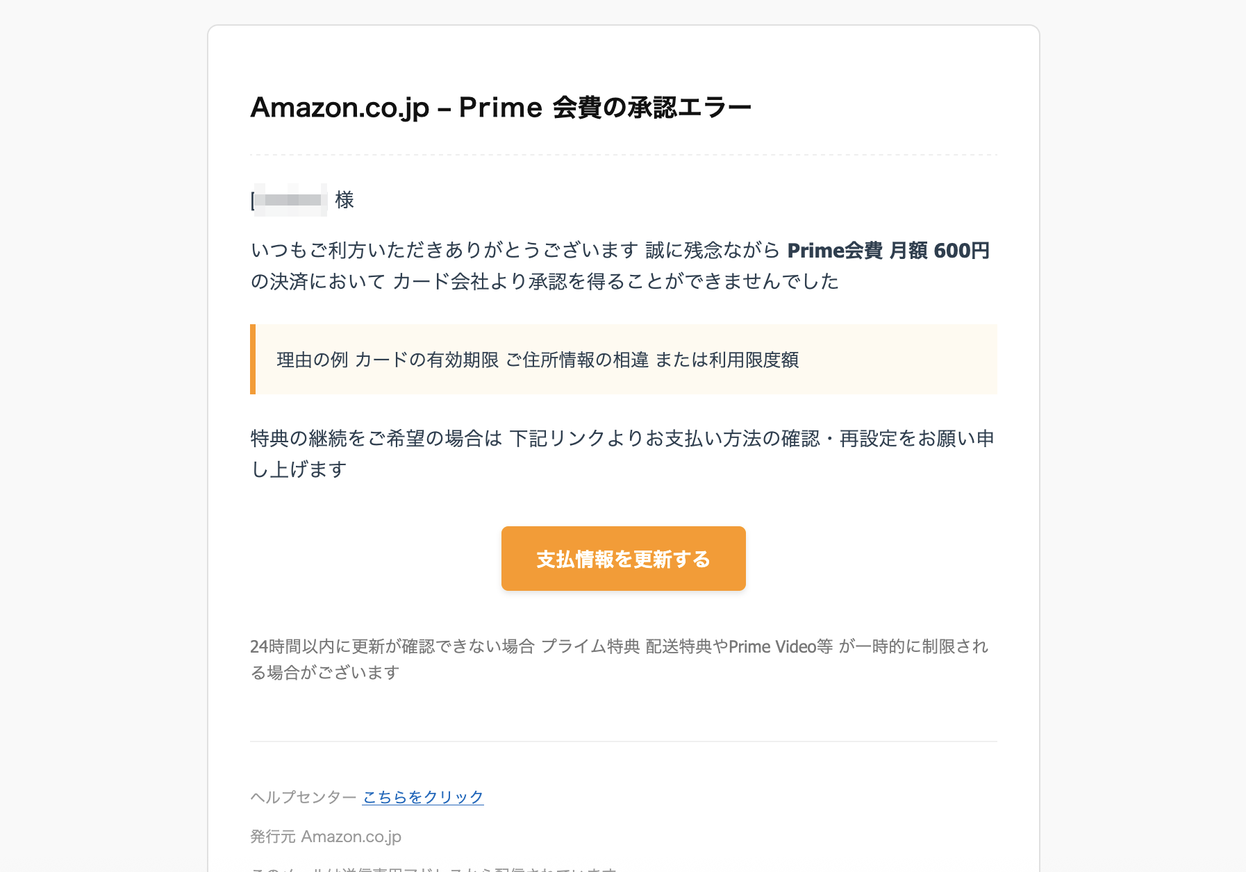 From: Amazon Prime <AmazonPrimeVideo.reply@croma.jp>リンク先は接続できますが、エラーとなります。