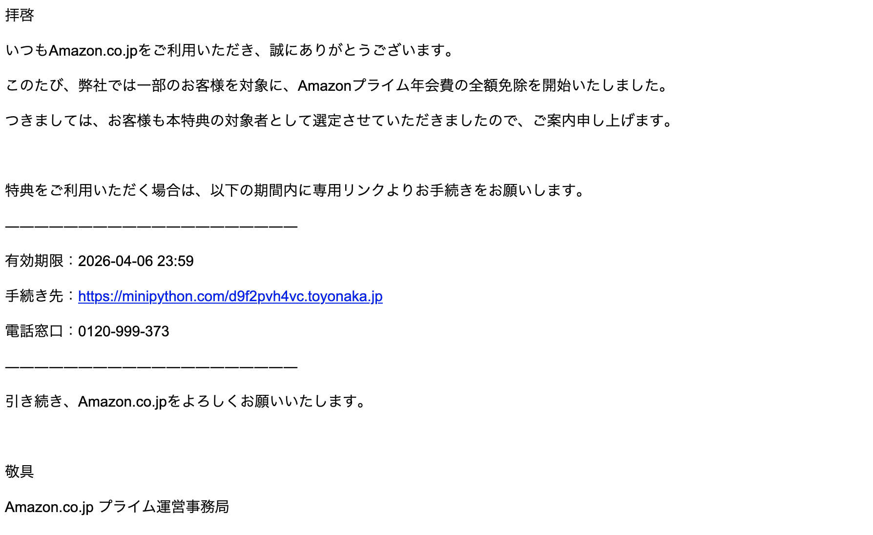 2026年 4月 6日にAmazonを騙る詐欺メールが学内のメールアドレスに送信されてきていることを確認しました。サンプルとして一部を示します。
