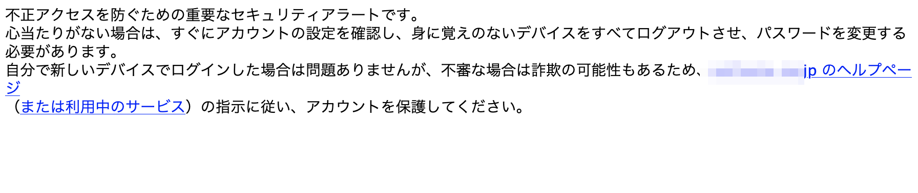 Subject: あなたのアカウントは別のデバイスからアクセスされました。