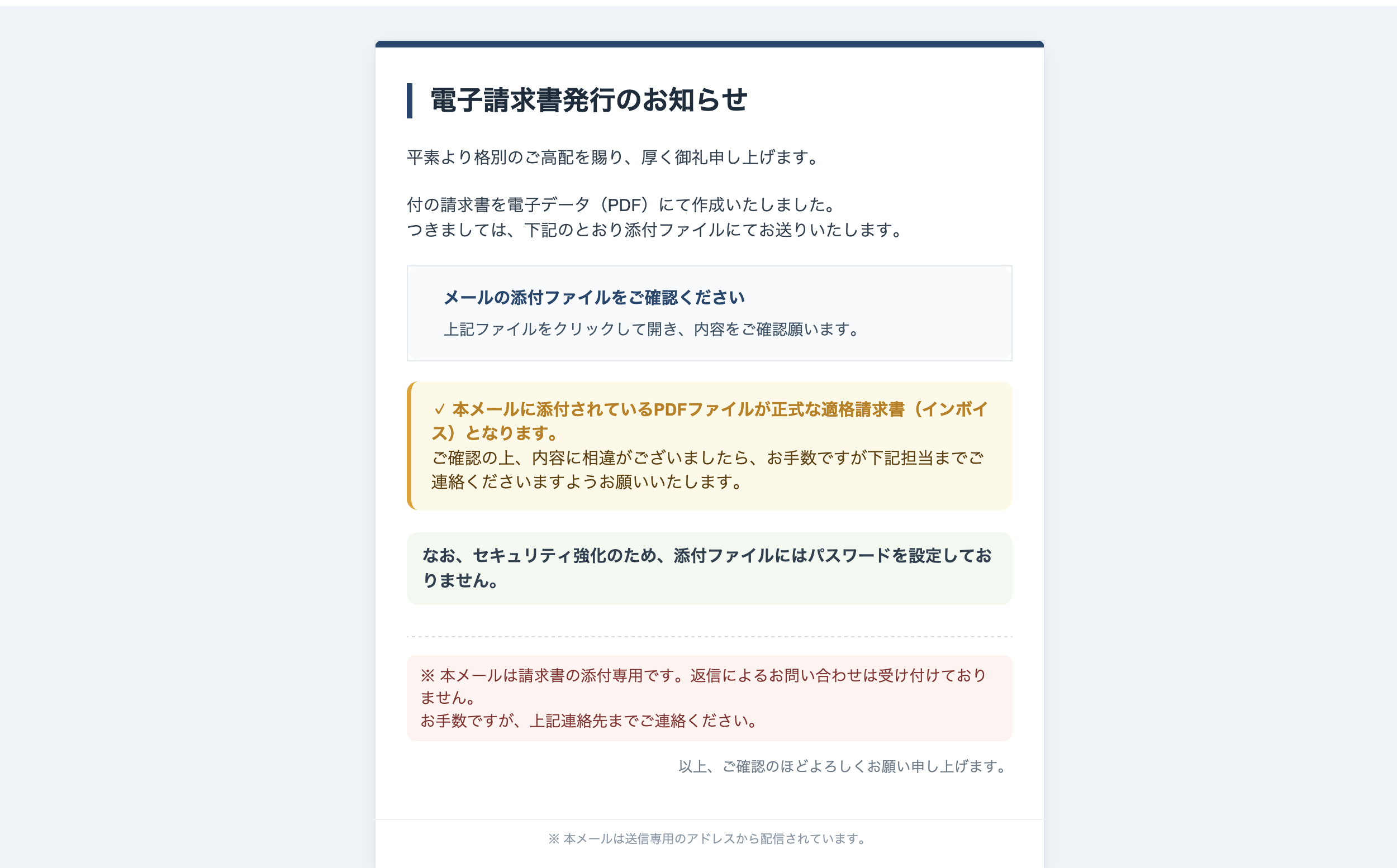 | 電子請求書発行のお知らせ.zip | 1b29f1cae16badf07448a80e7b0611eada9111dcad8a01a03dda0d3849d3bc54 |