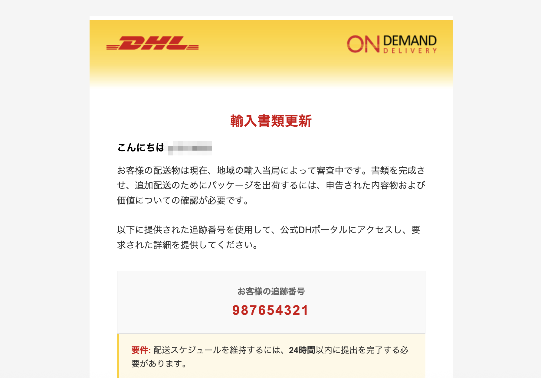 From: DH Express サービスチーム <updates@emailhost.net>リンク先は詐欺サイトが動作しています。