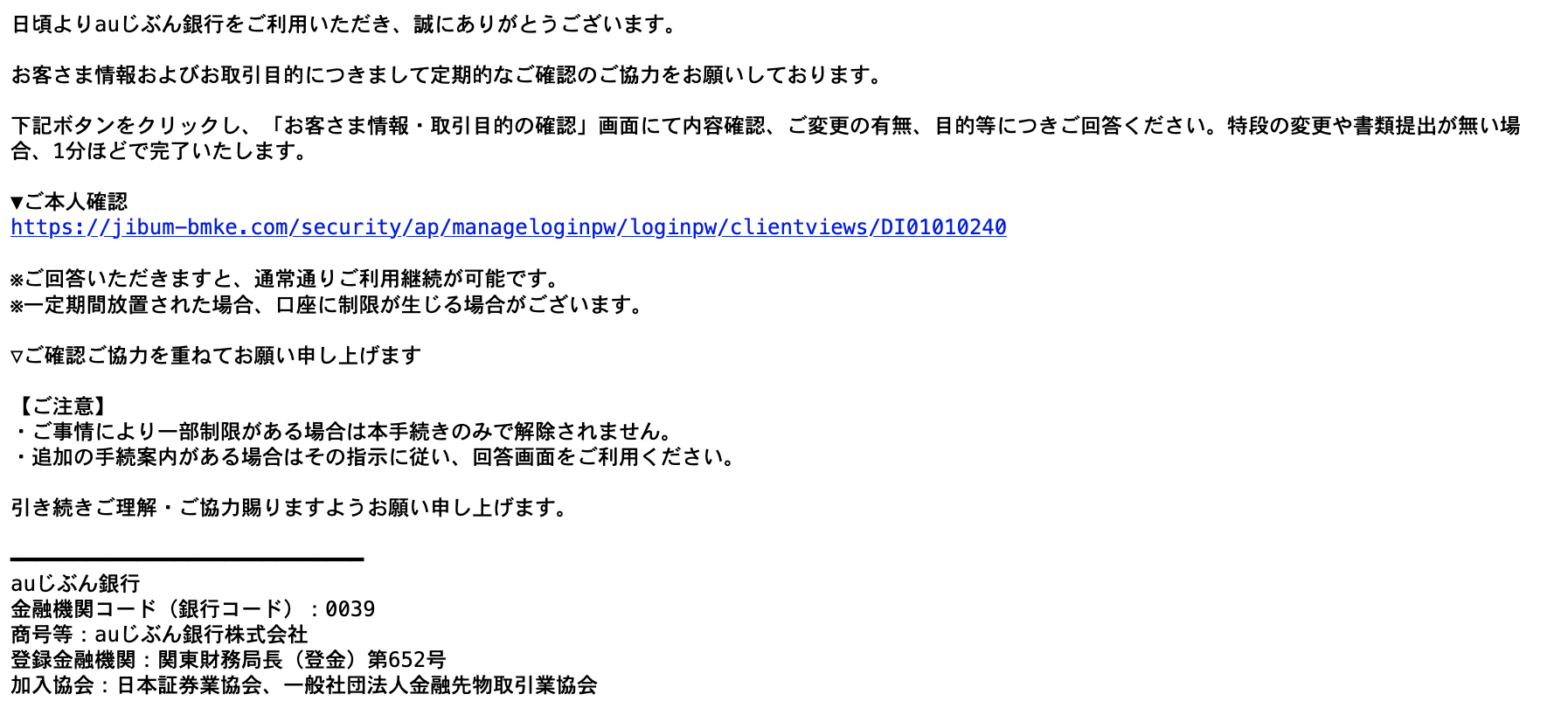 Subject: 【auじぶん銀行】【重要】必ずご回答ください/お客さま情報等の確認について