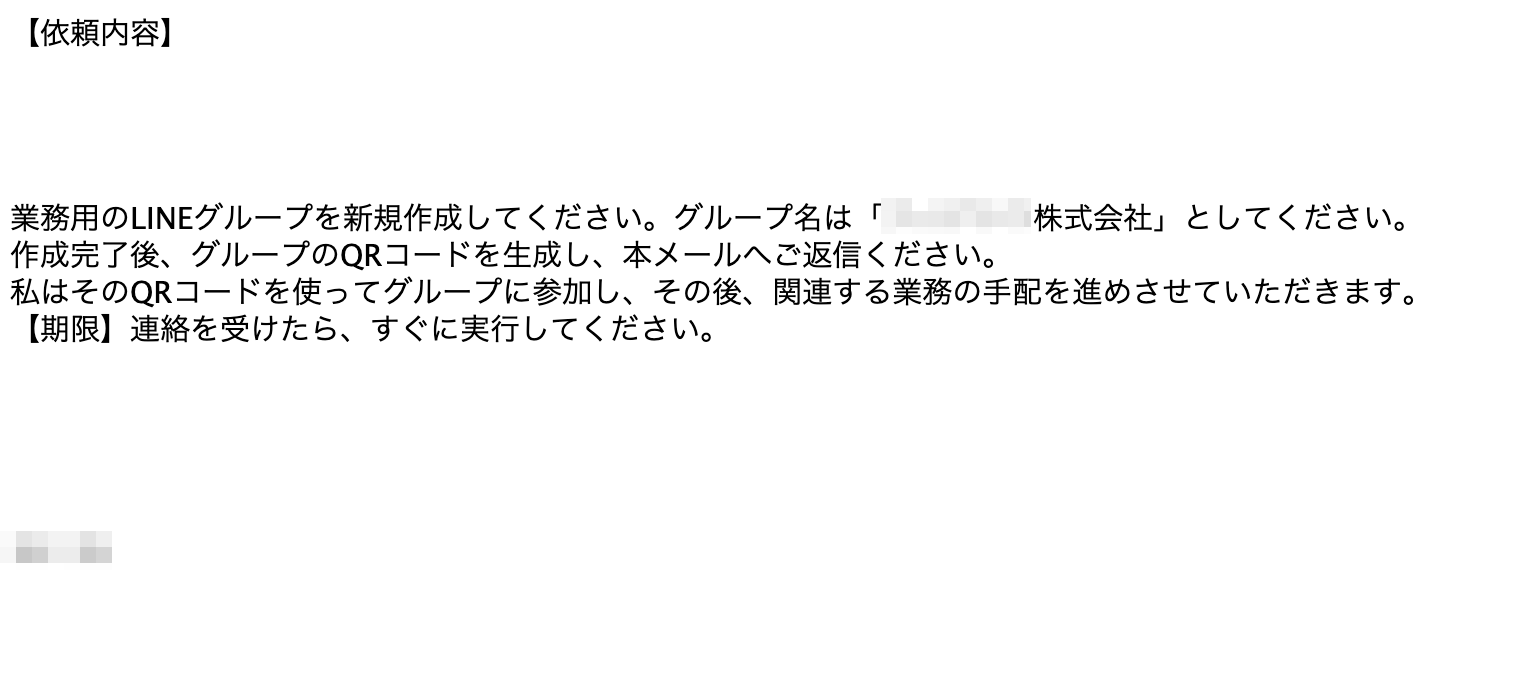 2026年 4月21日にLINEグループ作成を要求されるCEO詐欺メールが学内のメールアドレスに送信されてきていることを確認しました。サンプルとして一部を示します。