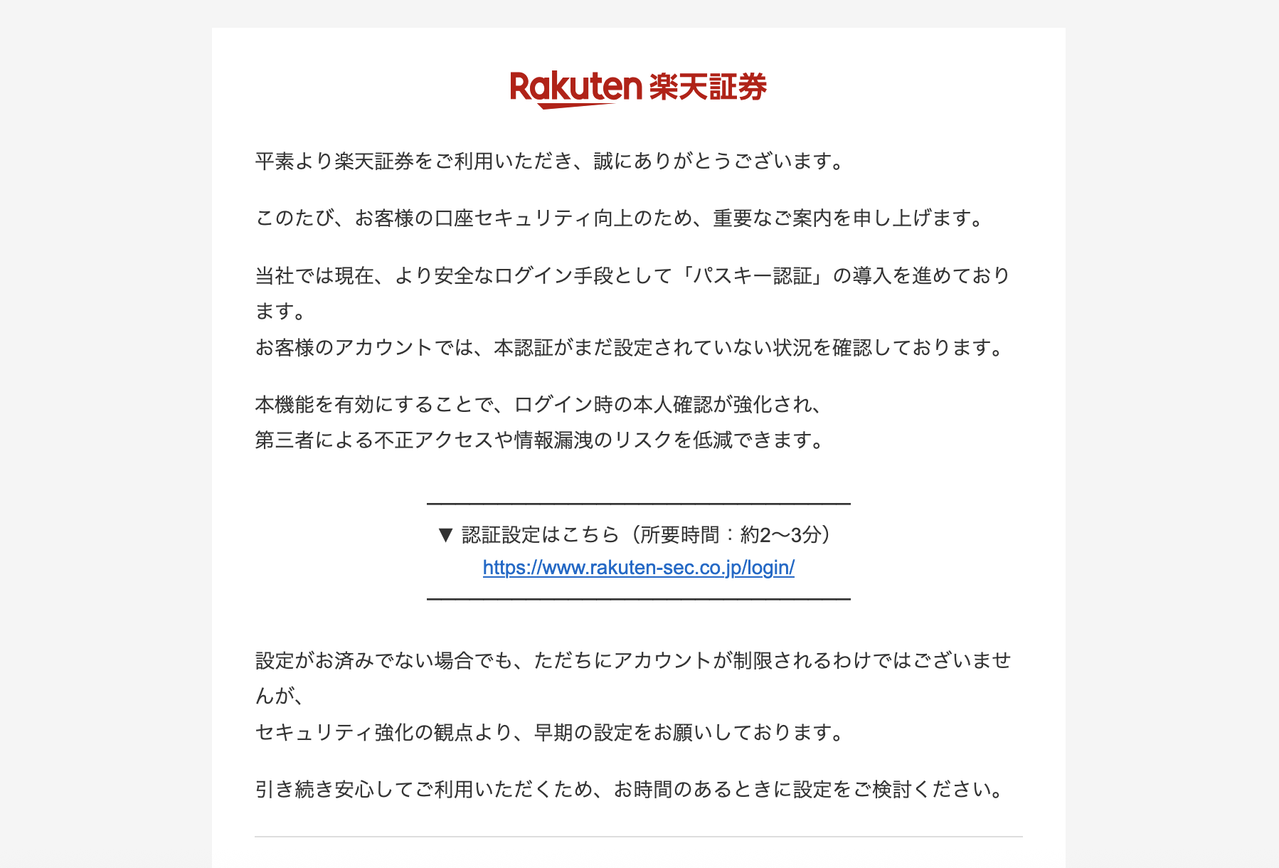 Subject: 【楽天証券】アカウント保護のための設定のお願い