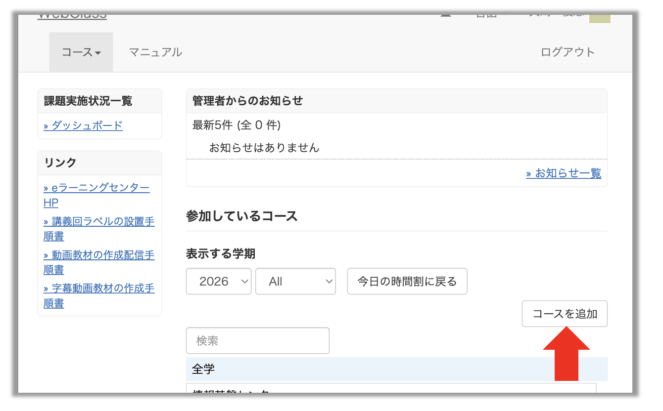 WebClass にアクセスし, ログイン画面を表示する をクリックしてください.