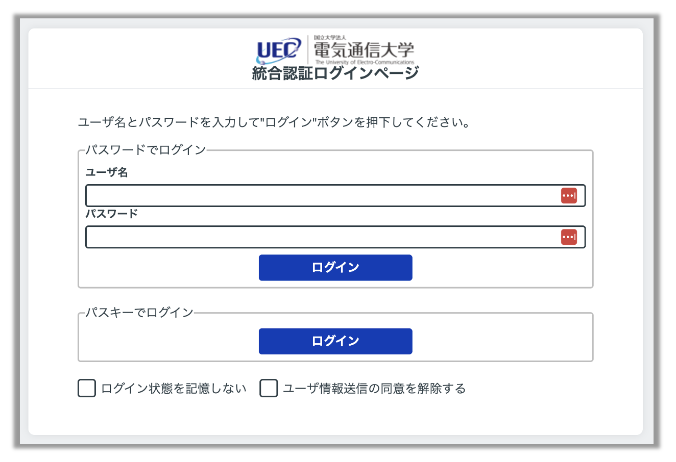 ログイン画面が表示されるので, UEC アカウント でログインしてください.