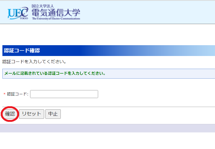 UECアカウント作成時に事前登録された個人用プライベートメールアドレス に 2 要素認証用の認証コードが通知されます.