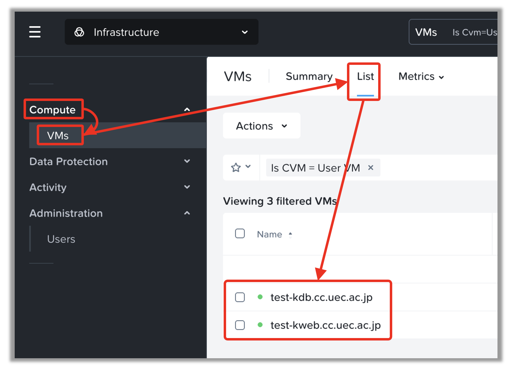 全学仮想化基盤 (HCI) にログインする の方法でログインし,操作したい仮想マシンをクリックします.