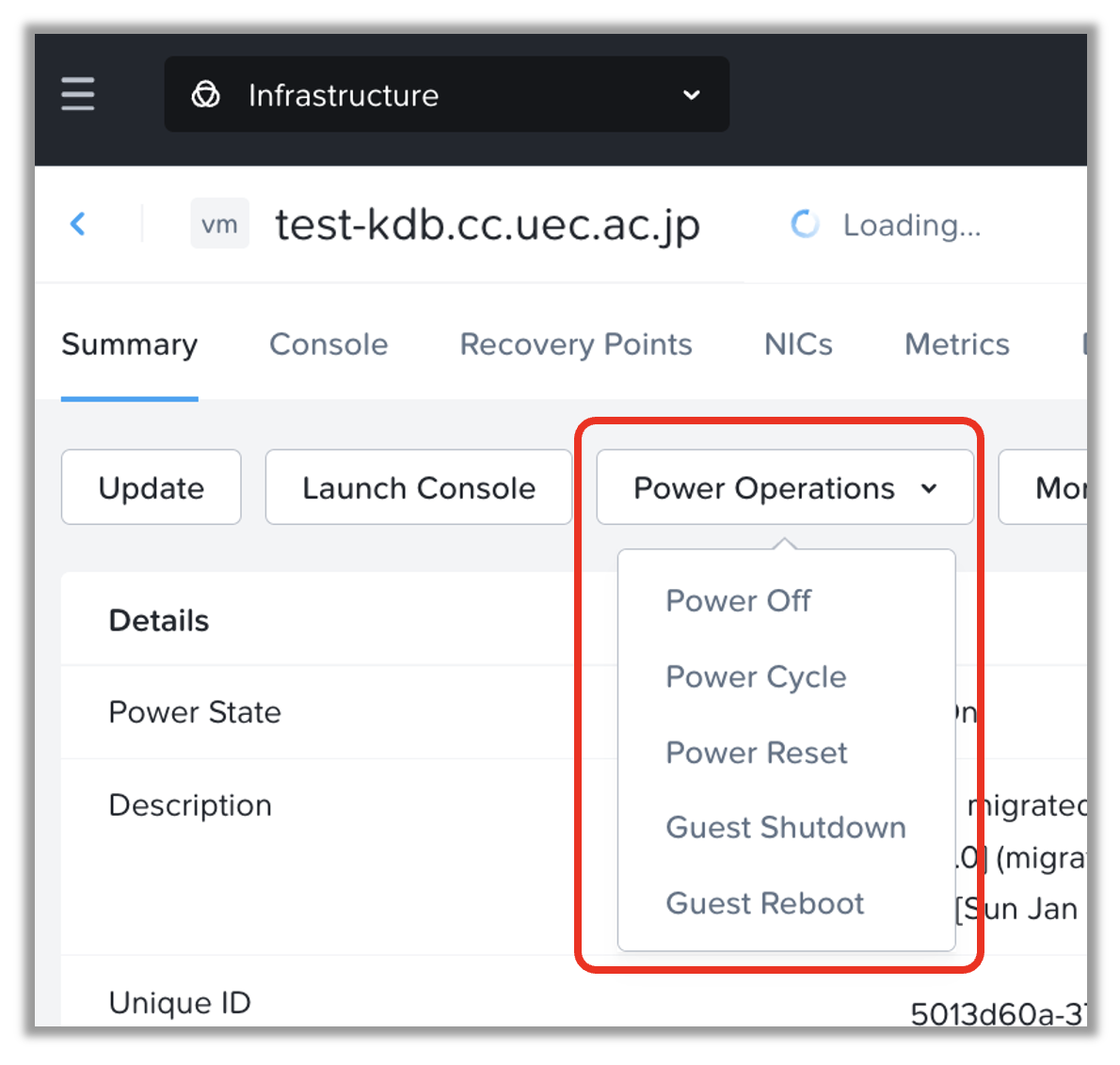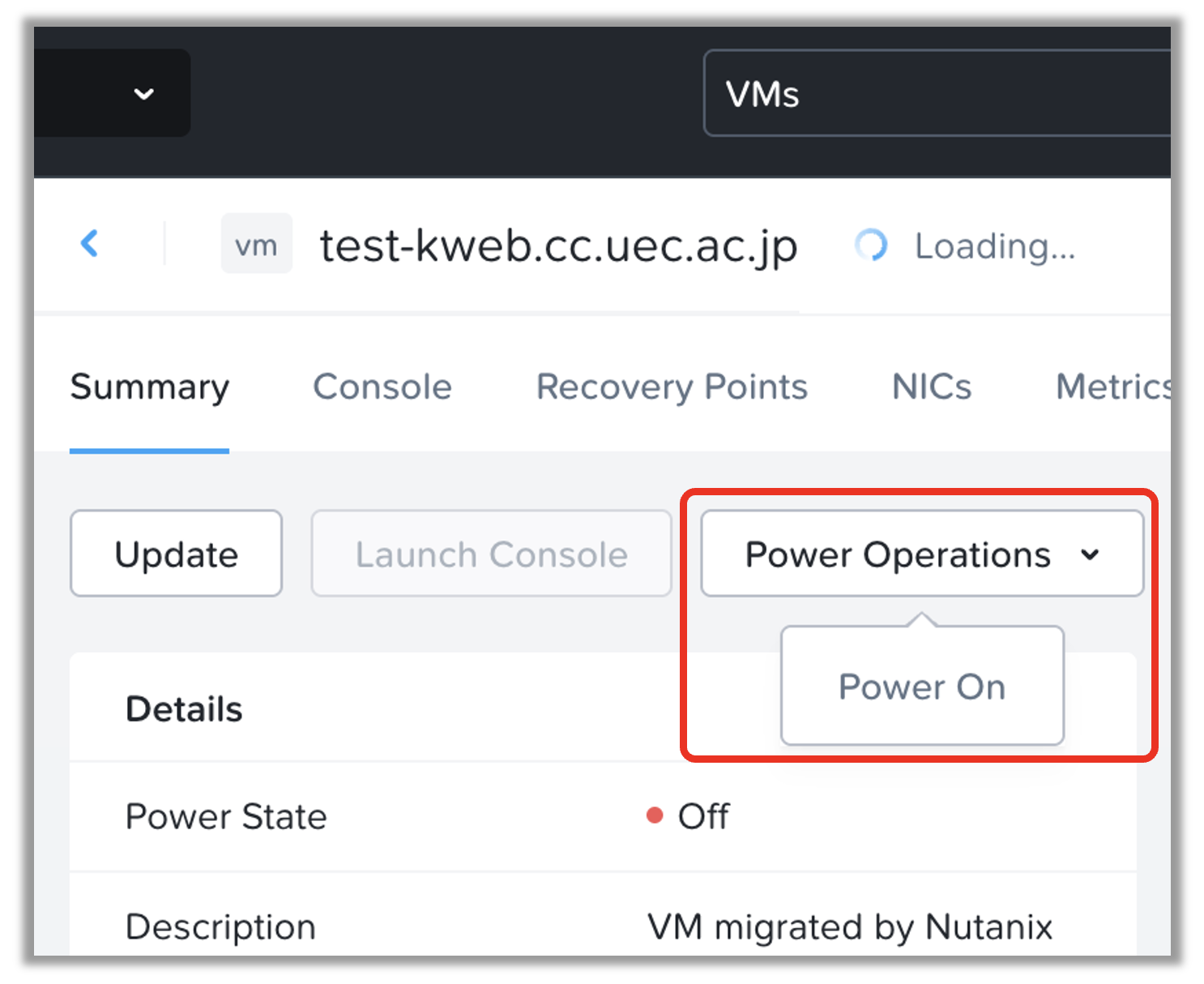 全学仮想化基盤 (HCI) にログインする の方法でログインし,電源を操作する仮想マシンをクリックします.